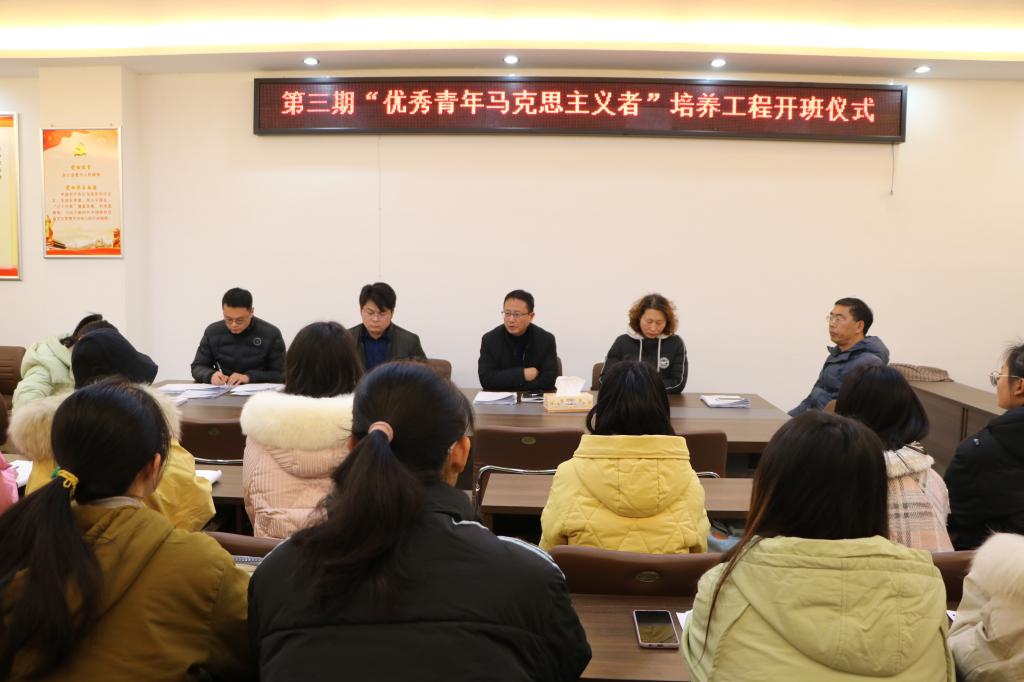 仪式伊始,唐国战介绍了“优秀青年马克思主义者”培养工程的相关情况。他指出,举办青马工程的目的在于为国家培养一批政治坚定、德才兼备,胸怀为国奉献之志的优秀青年马克思主义者。因此,他要求各位学员要深入系统的学习马克思主义理论知识,以坚定的马克思主义信仰指导实践。接着,第三期青马工程学员代表宋佳怡发言,她号召各位学员要增强“四个意识”、坚定“四个自信”、做到“两个维护”,将自己所学所获转化为成长的奠基石,为成为一名优秀的青年马克思主义者而不懈奋斗。最后,朱四倍宣布第三期青马培训班正式启动并发表讲话,希望学员们牢记初心使命,不辜负党的培育,不负时代,不负韶华,成为一个有高度、有格局、有作为的优秀青年马克思主义者。