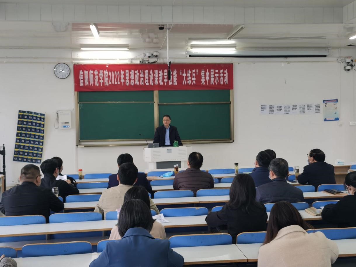 集中展示前,訾其伦介绍了本次活动的具体安排及评分细则,经理唐国战强调了活动开展的重要性并对活动提出了明确要求。全体思政课专兼职教师以教研室为单位分别在四个课堂进行集中展示。参加展示的共有5门本科课程,分别为思想道德修养与法治、马克思主义基本原理概论、毛泽东思想和中国特色社会主义理论体系概论、中国近现代史纲要、形势与政策和研究生课程《新时代中国特色社会主义理论与实践》。集中展示结束后,评委老师逐一对每位教师展示情况进行点评,分别指出优点与不足,以期进一步改进和提高。