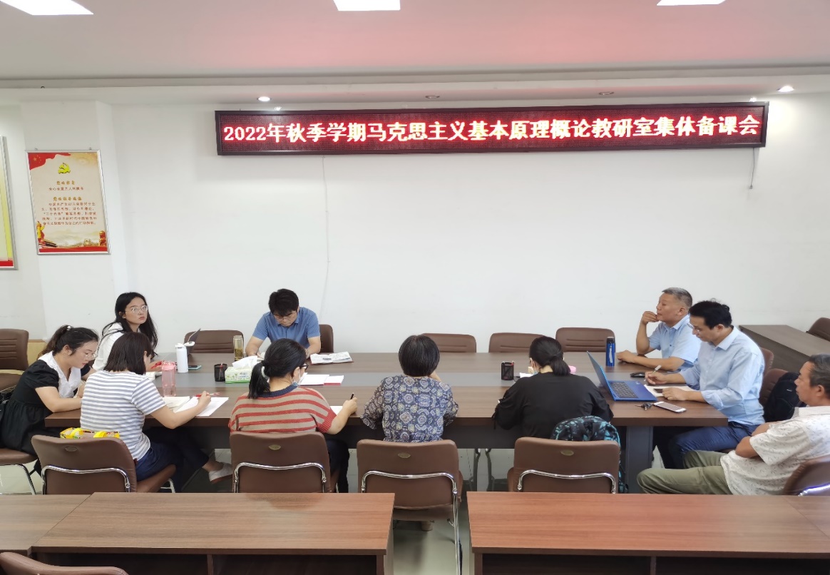 9月19日下午,公司马克思主义基本原理教研室在社科楼323会议室召开集体备课会,公司党委书记朱四倍及教研室全体教师参加了会议,会议由教研室主任陈雷主持。