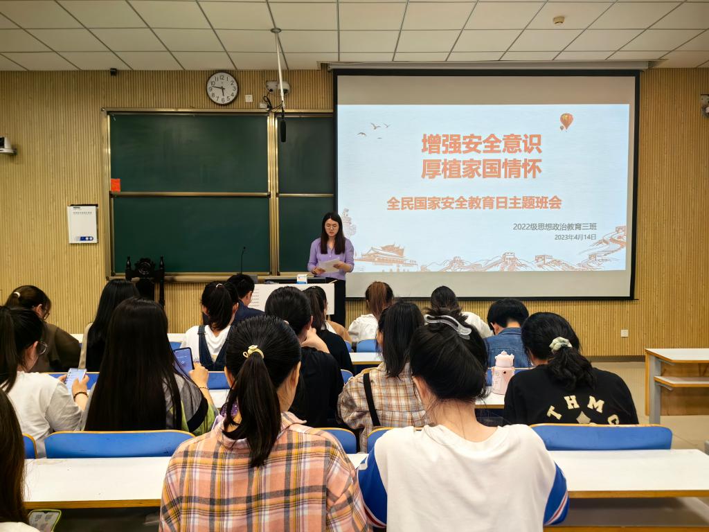 一、大处着眼,小处着手,开展相关主题班会活动。公司思想政治教育专业全部班集体相继召开主题班会,围绕“什么是国家安全”、“为什么重视国家安全”和“如何维护国家安全”三方面展开。采取辅导员讲解、PPT放映、播放视频和电影相结合的形式,帮助同学们了解国家安全,引导青年树牢总体国家安全观。