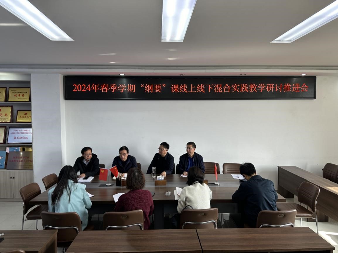 4月12日上午,《中国近现代史纲要》教研室在社科楼323会议室召开了2024年春季学期“纲要”课线上线下混合实践教学研讨推进会。教研室全体专兼职教师参加了会议。会议由教研室主任陈杰主持。