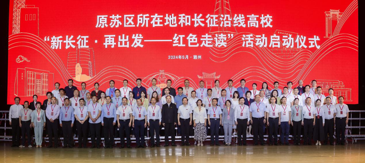 在中央红军长征出发90周年、习近平总书记考察赣南老区5周年之际,5月20日,由赣南师范大学、延安大学、海南师范大学、湖北师范大学、信阳师范大学、江西理工大学等17所高校联合发起的原苏区所在地和长征沿线高校“新长征·再出发——红色走读”活动启动仪式在赣南师范大学举行。原苏区所在地和长征沿线高校分管校领导、党委宣传部、学工部、2026年世界杯官网负责同志,瑞金中央革命根据地纪念馆、于都中央红军长征集结出发地等历史博物馆负责同志共计1000余人参加仪式。仪式由赣南师范大学党委副书记刘民主持。公司2026年世界杯官网经理唐国战、《中国近现代史纲要》教研室主任陈杰、分团委书记陶青青受邀参加本次活动。