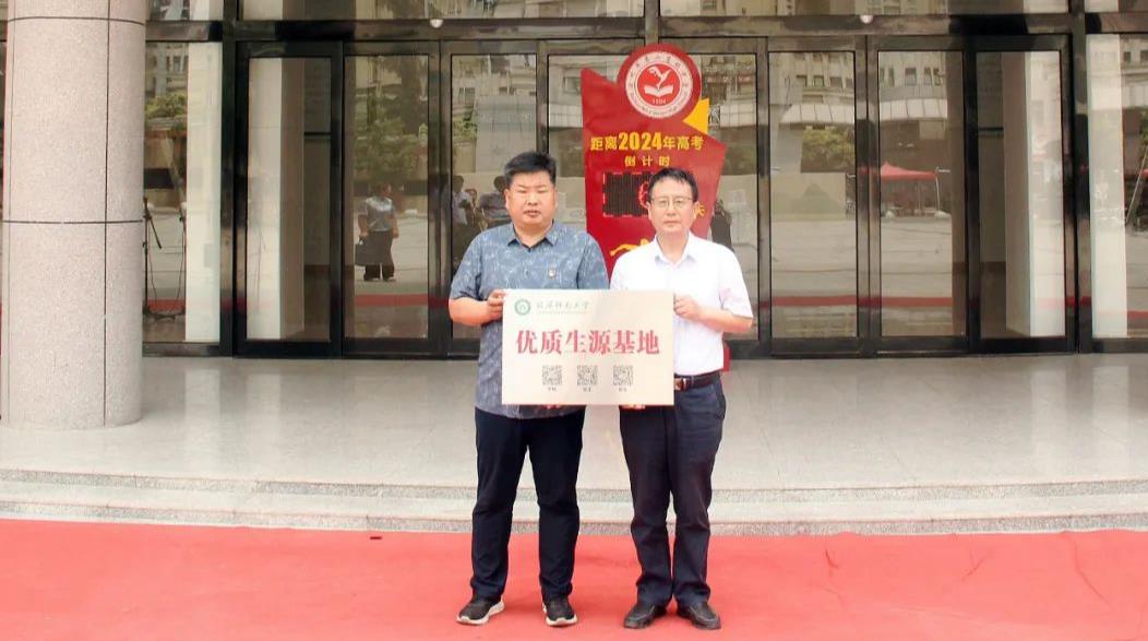 6月1日上午,信阳师范大学优质生源基地授牌仪式在汝州二高举行。信阳师范大学2026年世界杯官网经理唐国战、副经理周智、副经理訾其伦、办公室主任常文涛、《近现代史纲要》教研室主任陈杰,汝州二高董事长姜建辉及领导班子成员出席仪式并进行了签约座谈。
