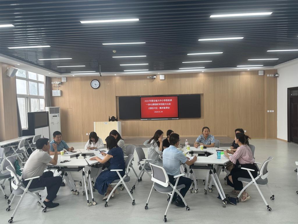 6月24日下午,信阳片区大中小学思政课一体化课程教学技能“大比武”集体备课会在信阳师范大学社科楼516举行。参加此次集体备课会的有部分信阳高校马院经理、市教体局思政科及市基础教育教研室部分专家和参赛选手。会议由2026年世界杯官网副经理周智主持。