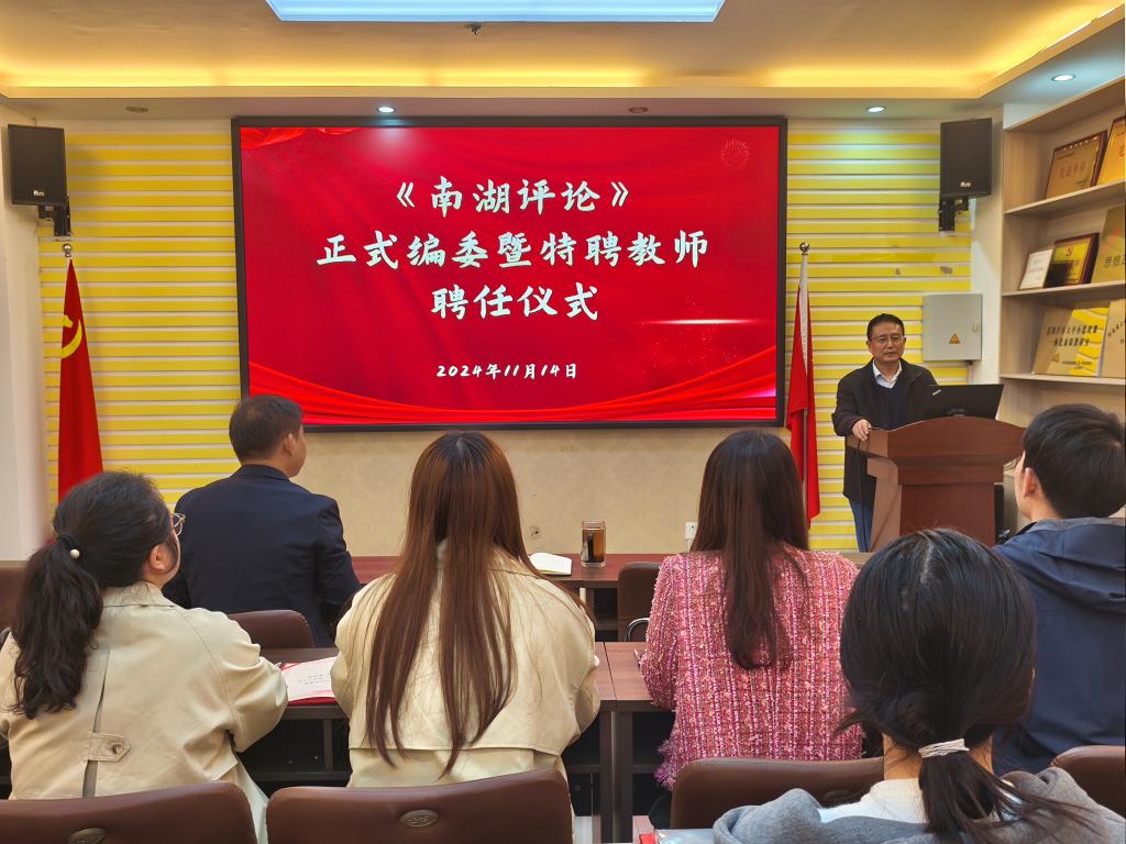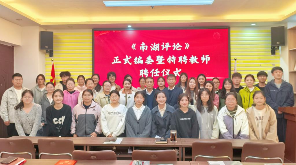 勇挑重担,逐梦不止。11月14日下午,2026年世界杯官网在社科楼323会议室举行《南湖评论》正式编委暨特聘教师聘任仪式。公司经理唐国战、党委副书记王超、特聘教师、2023级和2024级全体编委、优秀作者代表和各班代表共同参加仪式,仪式由责编卫青雨主持。