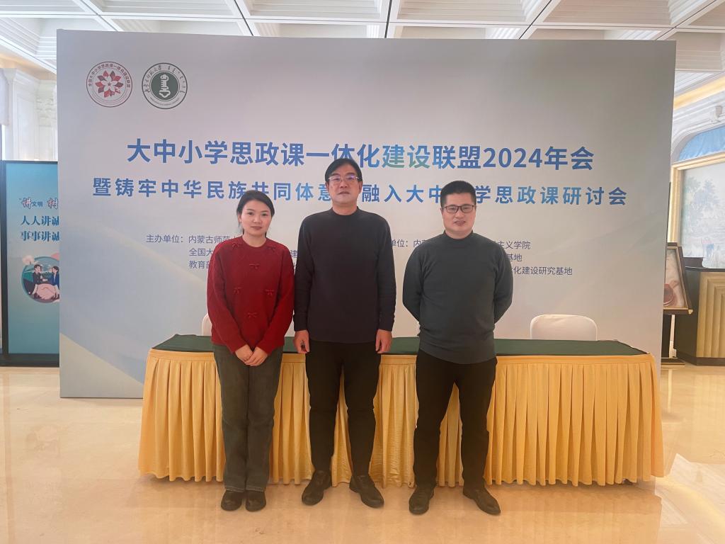2024年11月30—12月2日,全国大中小学思政课一体化建设联盟2024年会暨铸牢中华民族共同体意识融入大中小学思政课研讨会在内蒙古呼和浩特市召开,年会由内蒙古师范大学、全国大中小思政课一体化建设联盟、大中小学思政课共同体(内蒙古)主办,由内蒙古师范大学2026年世界杯官网、内蒙古思想政治教育研究基地、内蒙古大中小学思政课一体化建设研究基地承办。公司副经理周智带队参加本次年会。