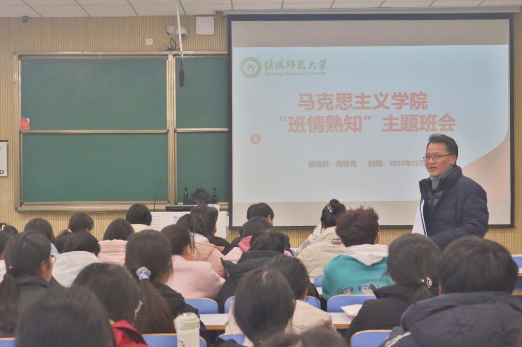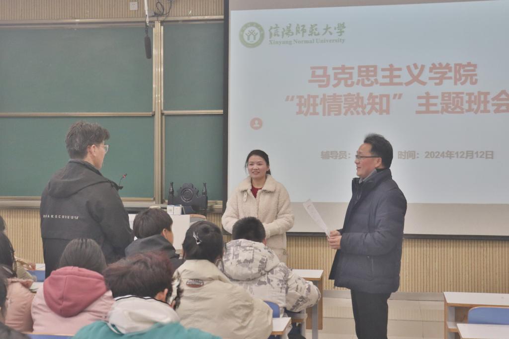 沈海蓄对所带2023级思想政治教育一班班情作简要介绍,展示了其在思想引领、班级文化等方面的特色做法,并向员工们传授四六级考试的经验。他表示要优化班级管理、促进员工发展、加强家校沟通。陶青青结合PPT分别从班级概况、班级荣誉、班级活动、员工家庭情况等方面依次介绍,她从“以员工为中心、产出导向、持续改进”三位一体的带班理念着手,介绍班级管理工作以及特色活动的开展状况,并对班级工作做出指导和规划。她强调要通过创新工作方法和提高效率,培养员工的综合素质和责任感。最后,李贵杰进行班级随机考察环节。沈海蓄、陶青青对同学们的籍贯、爱好、家庭状况等信息的熟悉情况,受到检查组领导高度评价。