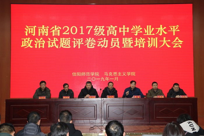 1月8日下午,公司在逸夫楼报告厅召开河南省2017级高中学业水平考试政治试题评卷动员暨培训大会。公司党委书记唐国战,党委副书记徐永新、何晓坚,副经理周智、黄世明、程晋富,当代马克思主义研究所副所长门献敏出席会议,200余名评卷人员参加了动员大会。大会由周智主持。