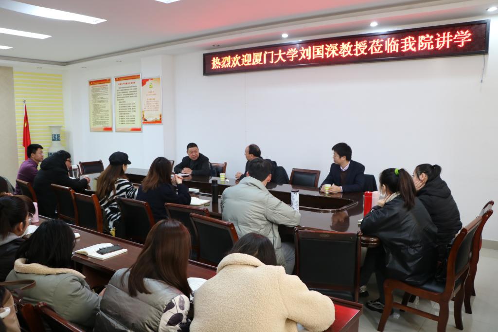 在专题讲座会上,刘国深围绕台湾问题的岛内因素、美国因素、大陆因素和时间因素四个维度对台湾问题局势和国家统一前景进行了深入地分析和阐释。他表示,两岸关系到今天已经走了“九十里路”,两岸在经济、文化等方面融合发展,形成了“你中有我”“我中有你”的局面。他强调,面对当前的两岸关系,我们要树立全局观念,理性地看待问题,对待台湾问题要有自信和定力,要设身处地从两岸人民共同利益上看台海局势。整场报告气氛活跃、案例生动、紧贴时政,刘国深教授以独特的战略思维,高深的理论素养,幽默风趣的语言为公司师生思考台湾问题,深入分析台海局势提供了全新思路和有益指导。会后,刘国深在社科楼323会议室,就国家社科基金项目申报、研究生论文写作等问题与我们院师生进行互动交流。