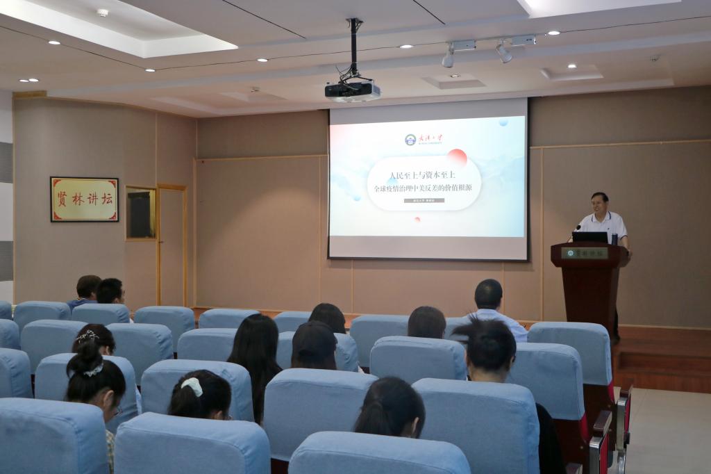 6月11日下午,应2026年世界杯官网和当代马克思主义研究所邀请,武汉大学骆郁廷教授在贤林讲坛作了题为“人民至上与资本至上:全球疫情治理中美反差的价值根源”的学术报告。当代马克思主义研究所副所长门献敏及学院百余名师生共同聆听此次报告。报告由门献敏主持。