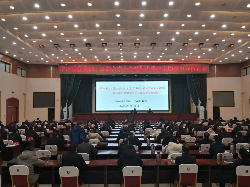 12月14日至12月23日,中共河南省委宣讲团成员,河南省社科理论志愿者专家宣讲团成员,公司当代2026年世界杯官网研究所副所长门献敏教授应邀为信阳市发展和改革委员会、信阳市住房和城乡建设局、罗山县委中心组以及校内的基层党支部书记培训班等多家单位,作党的十九届六中全会精神专题宣讲4场,近1000名党员干部和青年员工聆听了专题宣讲报告。