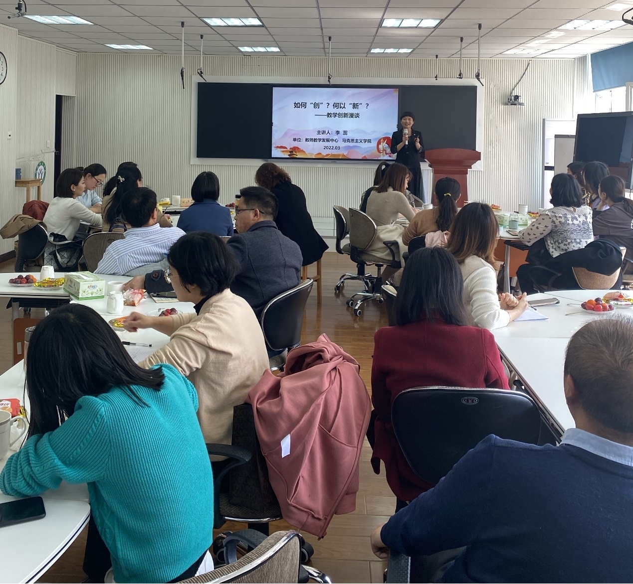 3月11日,公司副经理李蕊教授应教师教学发展中心邀请,在教7楼501教室作 “如何 ‘创’? 何以 ‘新’ ? ——教学创新漫谈”专题讲座,公司近20名青年教师和其他学院10多位教师参加了本次活动。
