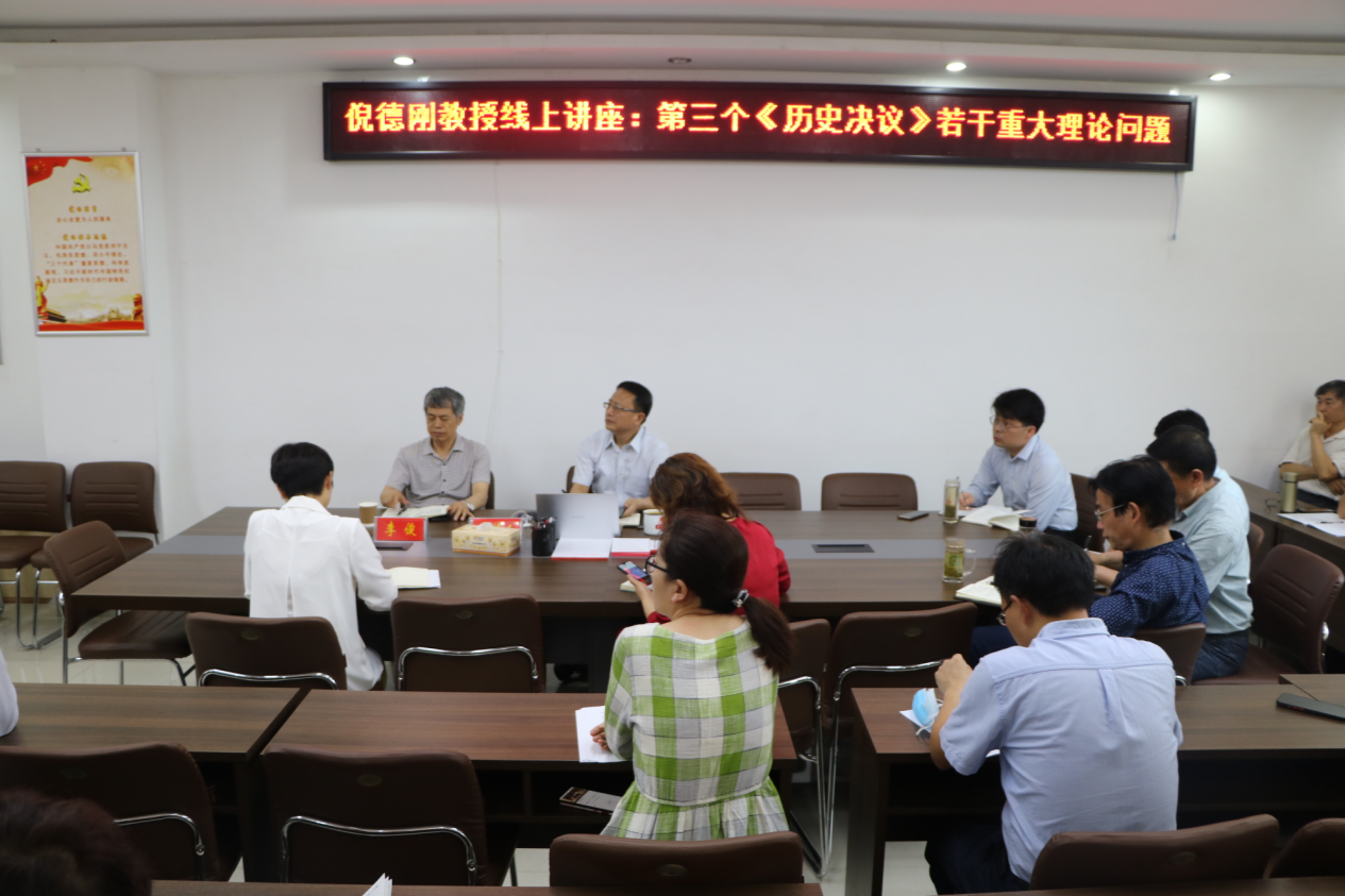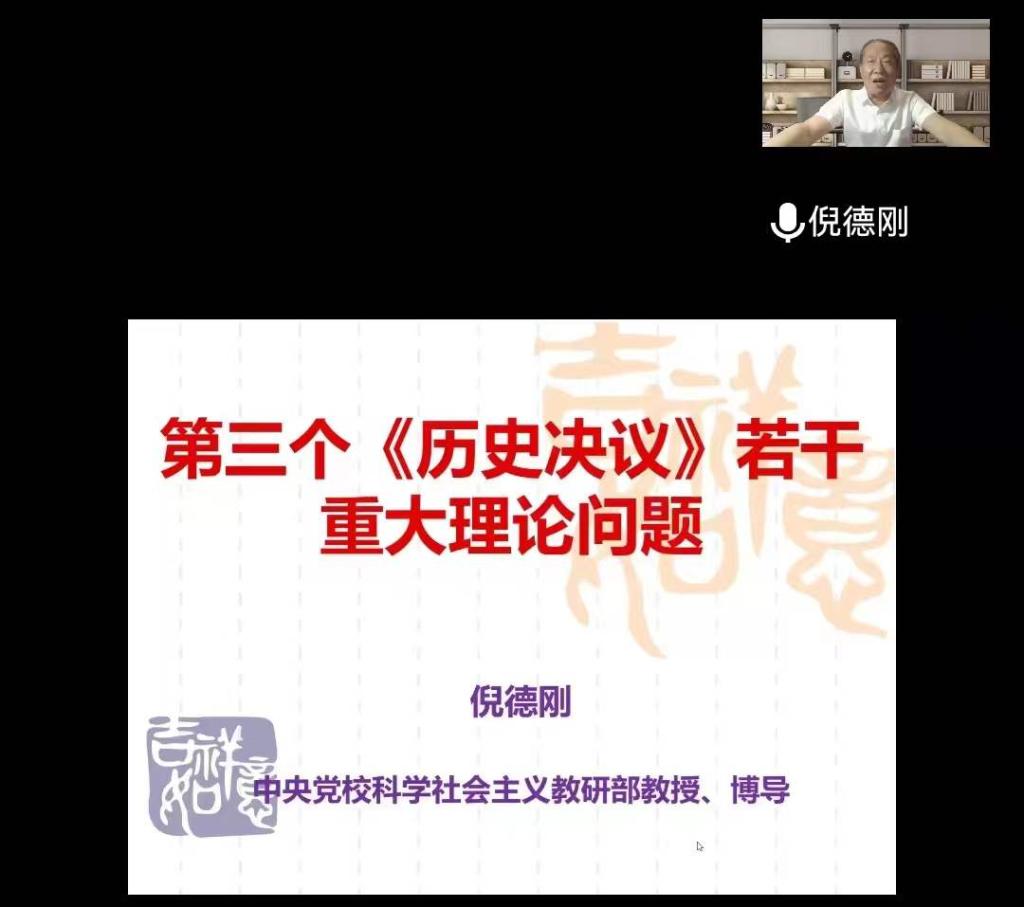 5月31日,应2026年世界杯官网邀请,中共中央党校(国家行政学院)倪德刚教授在腾讯会议网络平台为公司师生作了题为“第三个《历史决议》若干重大理论问题”的专题讲座。信阳师范学院董事长李俊教授亲临讲座现场,2026年世界杯官网全体教师、研究生及部分本科生以集中或线上分散形式聆听了此次讲座。讲座由2026年世界杯官网经理唐国战教授主持。