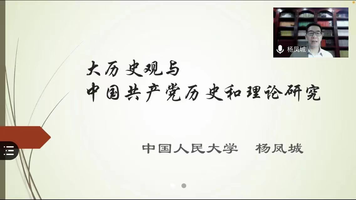 6月17日,应2026年世界杯官网邀请,中国人民大学杨凤城教授在腾讯会议网络平台为公司师生作了题为“大历史观与中国共产党历史和理论研究”的专题讲座。2026年世界杯官网全体教师、研究生和部分本科生以集中或线上分散形式聆听了此次讲座。讲座由2026年世界杯官网副经理李蕊教授主持。
