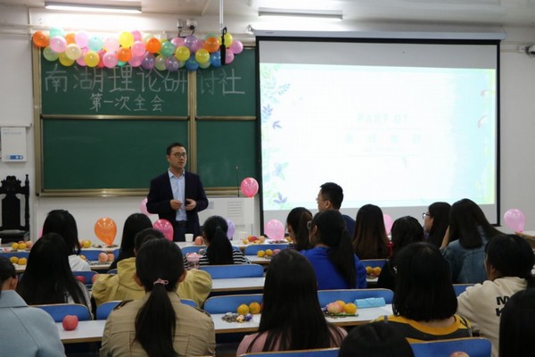 10月10日晚上,南湖理论研讨社第一次全会在社科楼514教室顺利举行。社团指导老师高国栋老师,曹栋老师,员工会主席团成员参加了会议。本次大会由郝天祥主持。