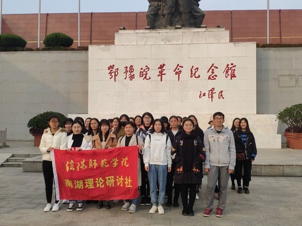 由张静、李浩楠组织社员们有序步行前往鄂豫皖革命纪念馆。到达后,同学们严格遵循参观纪律,自行参观纪念馆。在鄂豫皖革命纪念馆内,按照不同的历史阶段,分别以图片、文字、实物,展示了鄂豫皖革命根据地的重大历史事件、重要战役、英雄事迹。同学们参观完毕后,纷纷表达了自己的崇敬之情,随后,张静希望同学们能够缅怀先烈,不忘历史,珍惜现在来之不易的美好生活。最后,全体参与者合照留念。