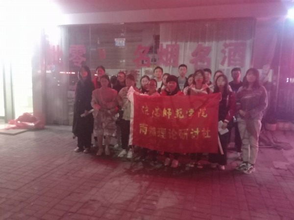 通过日常观察和访谈发现,临近学校的南湖路路灯较暗,给路上的行人、附近的居民及商家的日常生产生活造成了极大的不便,同时也存在着巨大的安全隐患。基于此,南湖理论研讨社开展了本次调研。本次活动于11月12日晚开始开展,南湖理论研讨社社长温嘉林,副社长梁曼、王会杰,团支书靳梦哲以及各部门部长共同参加了本次活动。