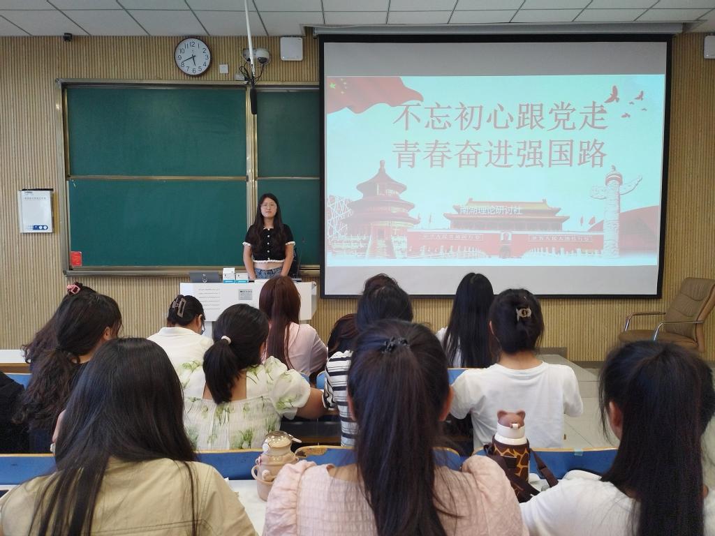 为深入学习领悟习近平总书记提出的伟大建党精神,引导员工增强爱党爱国意识,凝聚青年奋进力量,南湖理论研讨社于9月17日晚在社科楼515教室举办“践行初心,担当使命”主题团课。团课由团支书武文雪主持,南湖理论研讨社、豫南明珠环境保护协会、考研服务社社团成员共同参加。