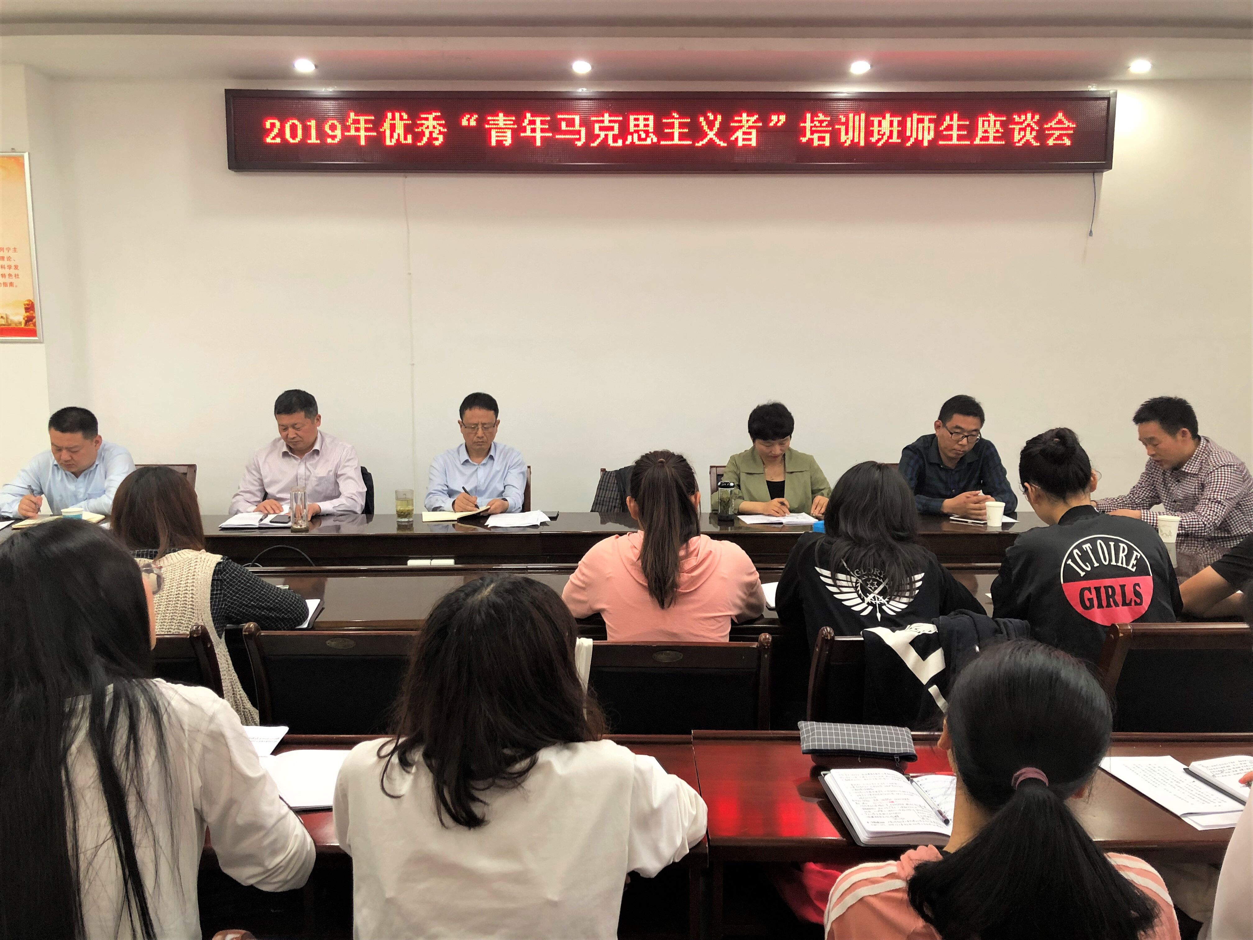 5月14日下午,公司2019年优秀“青年马克思主义者”培养工程在社科楼323会议室召开了师生座谈会。公司党委书记唐国战,党委副书记徐永新、何晓坚,老师代表李蕊、王帆宇、王建礼和全体辅导员、青马工程全体学员共同参加座谈会。会议由党委副书记何晓坚主持。