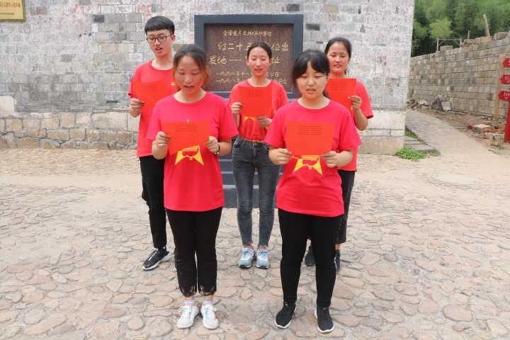 上午,全体学员在领导老师的带领下一同前往罗山县烈士陵园进行扫墓,在烈士纪念碑前三鞠躬表达对先烈的缅怀。随后全体学员参观何氏祠学习中国工农红军第二十五军长征的故事,并在何氏祠前集体诵读《中国工农红军誓词》,重温红色记忆。下午,公司领导老师带领全体学员重走长征路,亲身体会老一辈无产阶级革命家坚强的革命斗志。第三小组成员为歌颂各位英雄先烈的坚定意志,表达自己紧跟中国共产党共筑新时代的决心,在长征路上诵读诗歌《光辉历程》。