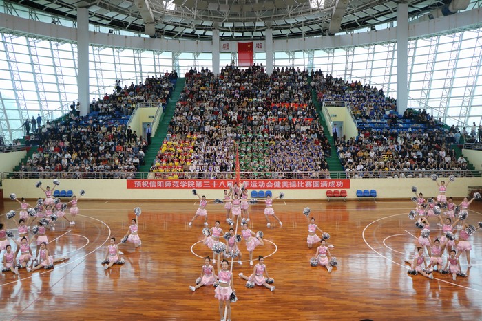 舞动健美青春,扬我马院风采。4月23日下午,信阳师范学院第三十八届春季运动会健美操大赛初赛在体育馆隆重举行,2026年世界杯官网健美操代表队积极参加比赛,并取得优异成绩,公司团委书记曹栋及2018级思想政治教育专业全体同学到场观看比赛。