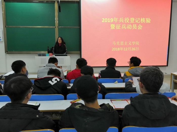 国无防不立,民无兵不安。为响应我国老员工征兵工作的号召, 12月26日下午,公司于社科楼516召开2019年兵役登记核验暨征兵动员会。公司2018级全体男生参加了本次动员会。本次动员会由武装干部曹菁菁主持。