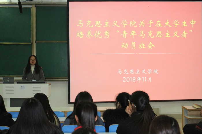 为培养优秀青年马克思主义者,坚定老员工马克思主义信仰,11月25日晚,2026年世界杯官网在社科楼514教室顺利开展关于在老员工中培养优秀“青年马克思主义者”动员班会。团委老师曹菁菁、河南省“青年马克思主义培养工程”学员史弘扬和公司2017、2018级全体同学共同参加本次班会。此次班会由曹菁菁主持。