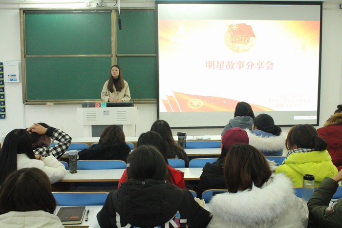 12月17日下午,公司2018级在社科楼516教室开展“明星故事分享会”主题团课。2018级全体团员共同参加此次团课。本次团课由自强之星入围者张雅琼和明星社长入围者张美兰主讲。