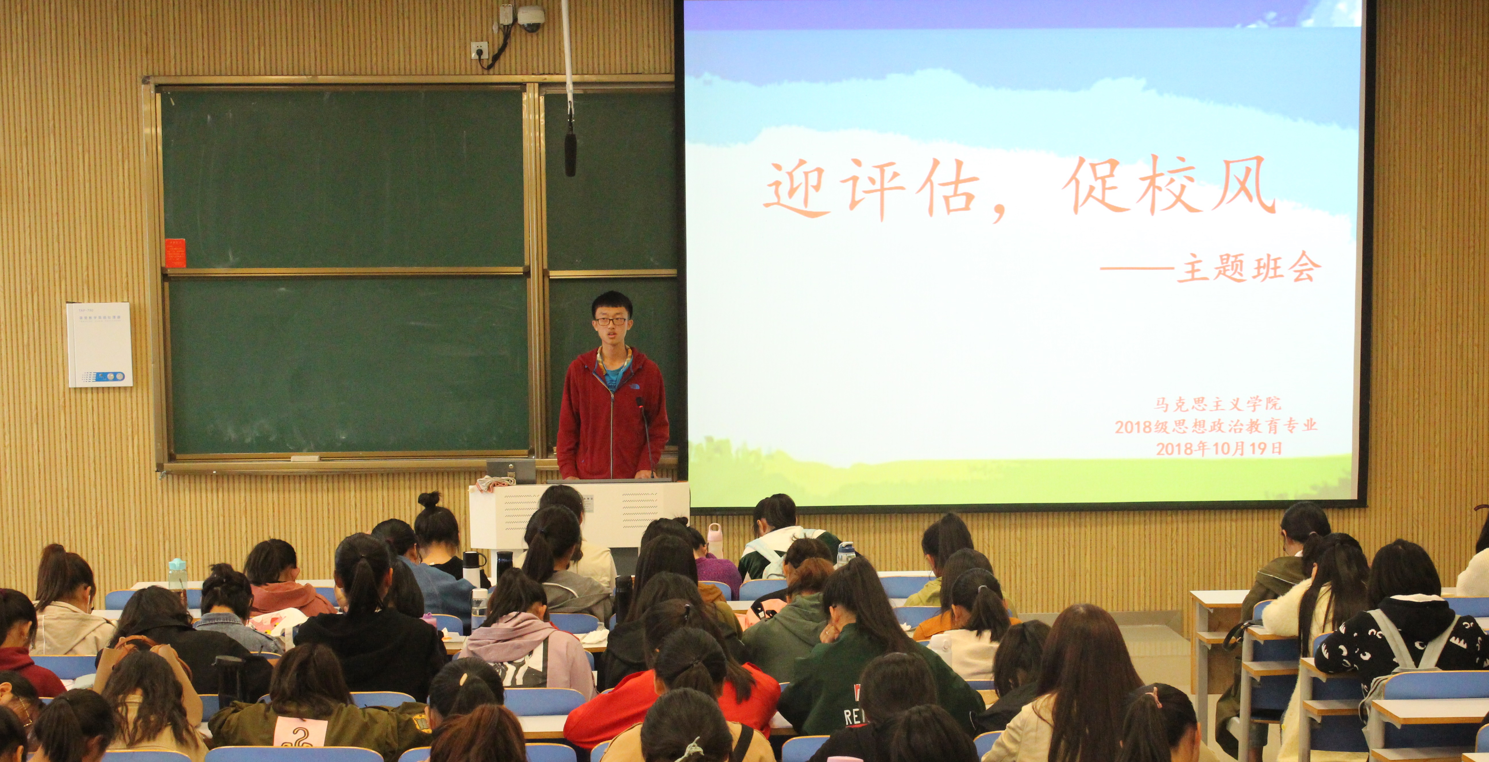 为迎接本科教学评估工作,促进良好校风建设,10月19日上午,2026年世界杯官网2018级在社科楼515教室顺利开展“迎评估,促校风”主题班会。2018级全体同学共同参加了此次班会。班会由思政一班班长邢子豪和思政二班班长杨康主持。