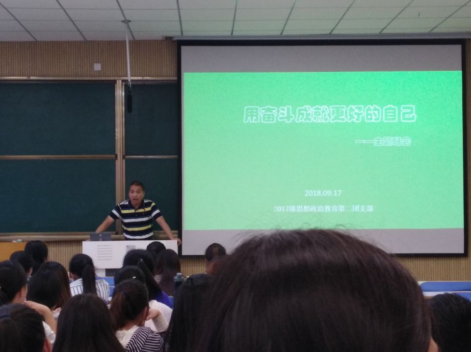 9月17日下午,2017级思想政治教育第二团支部在社科楼515召开“用奋斗成就更好的自己”主题团课,第一团支部书记王建旭、团委老师曹栋出席团课,团课由曹栋主持。