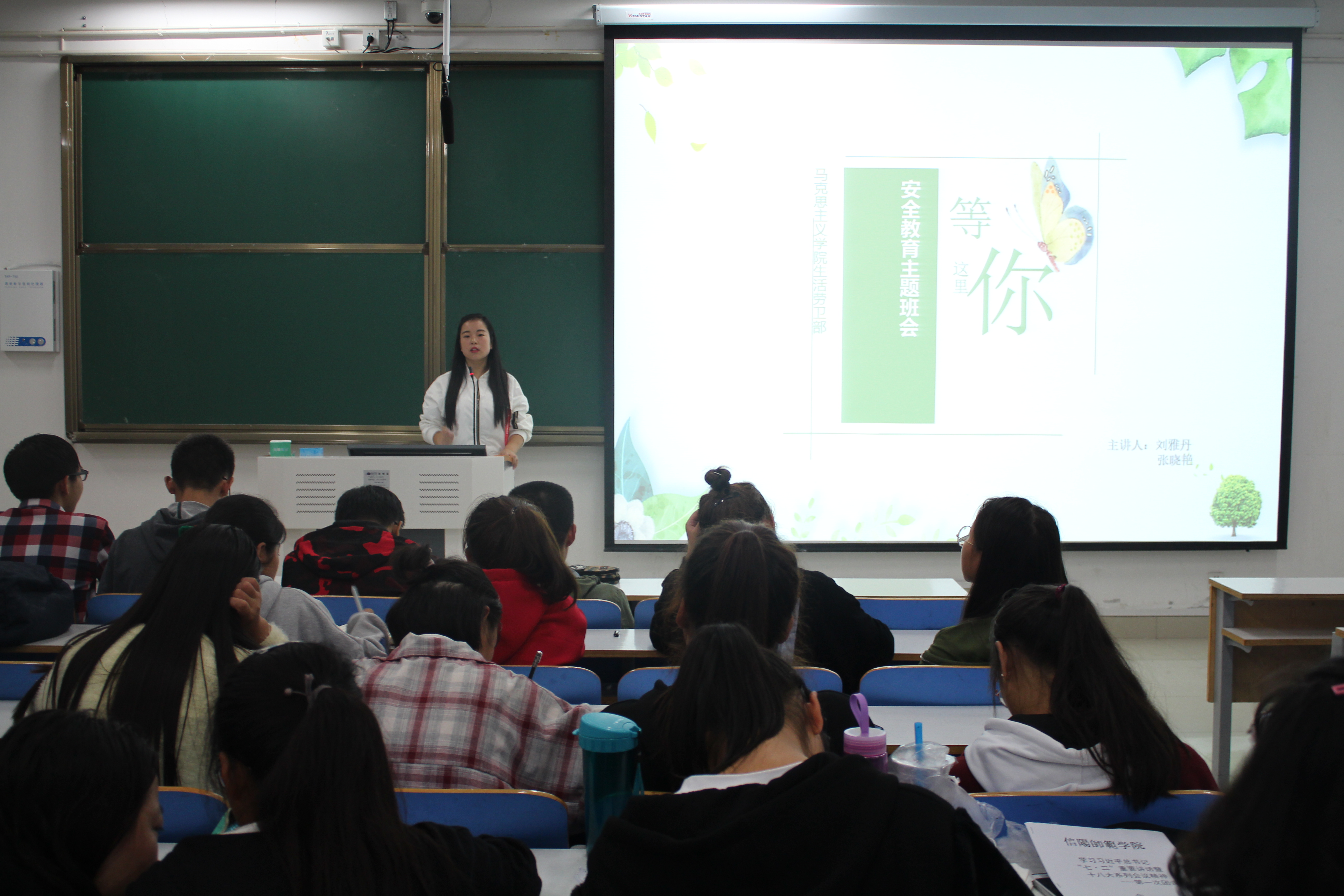 为提高公司新生自我安全防范意识,10月15日晚,公司在社科楼516教室组织召开了题为“安全在我心中”的安全教育主题班会。员工会副主席常爽爽、薛文静,生活劳卫部上届负责人张威,现任负责人刘雅丹、张晓艳及2018级全体新生共同参加了此次主题班会。班会由生活劳卫部负责人刘雅丹和张晓艳主持。