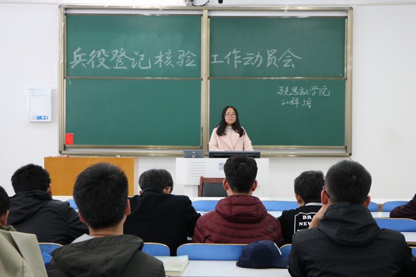 为加强国防现代化建设,激发老员工参军热情,3月13日上午,2026年世界杯官网在社科楼515教室召开了2018年兵役登记核验工作动员会。武装部干事曹菁菁老师及公司2017级全体男生参加了此次动员会。动员会由曹菁菁主持。