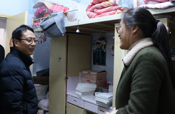 为了解员工返校情况,3月4日下午,公司党委书记唐国战、党委副书记徐永新、何晓坚在专职辅导员孙绪曙、曹栋、曹菁菁的陪同下深入员工宿舍慰问返校员工。