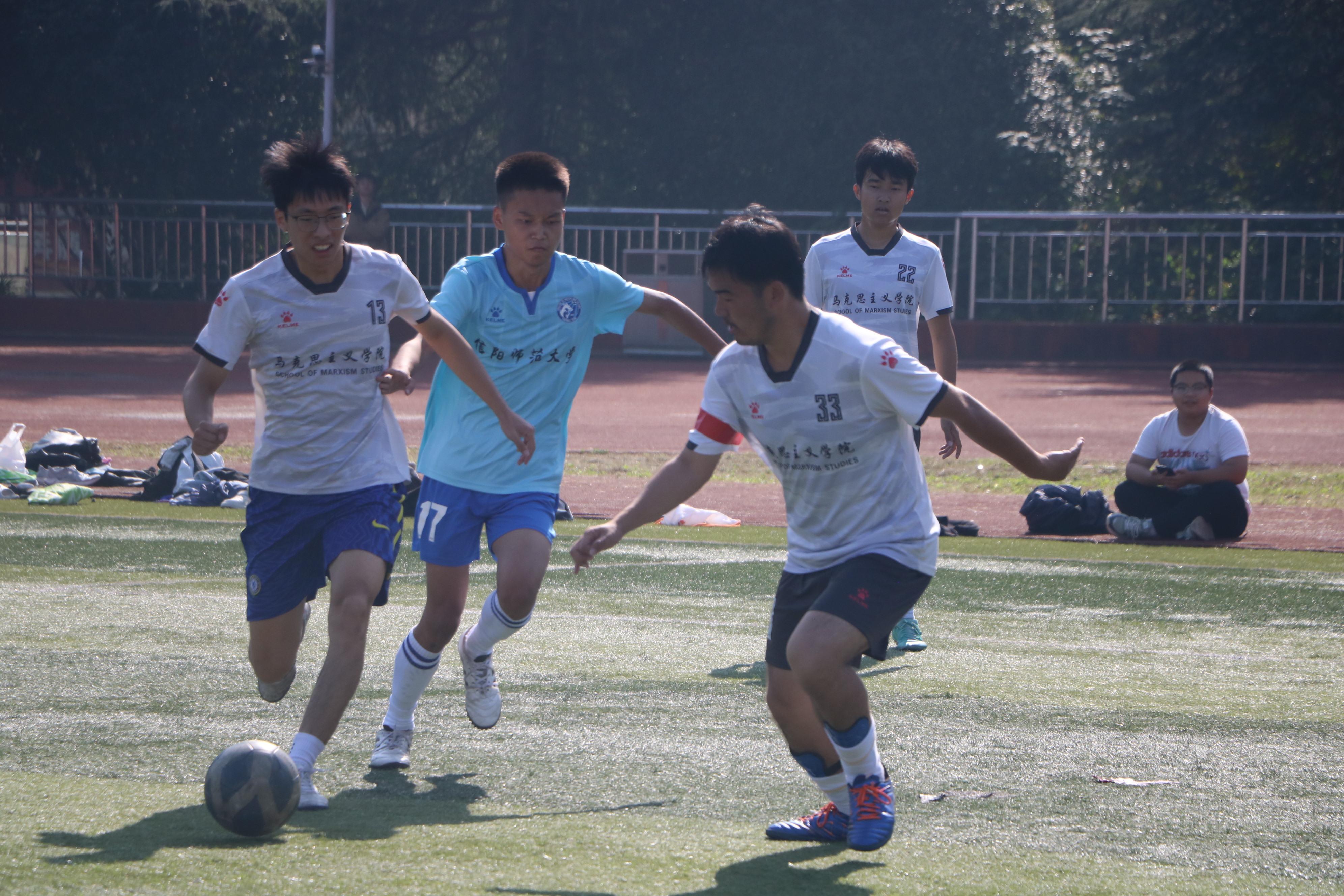 逐梦绿茵,拼搏前行。10月29日上午,“逐梦杯”男子足球小组赛在西操场拉开帷幕。2026年世界杯官网男子足球代表队与历史文化学院男子足球代表队展开激烈角逐。两院学子共同观看此次比赛。