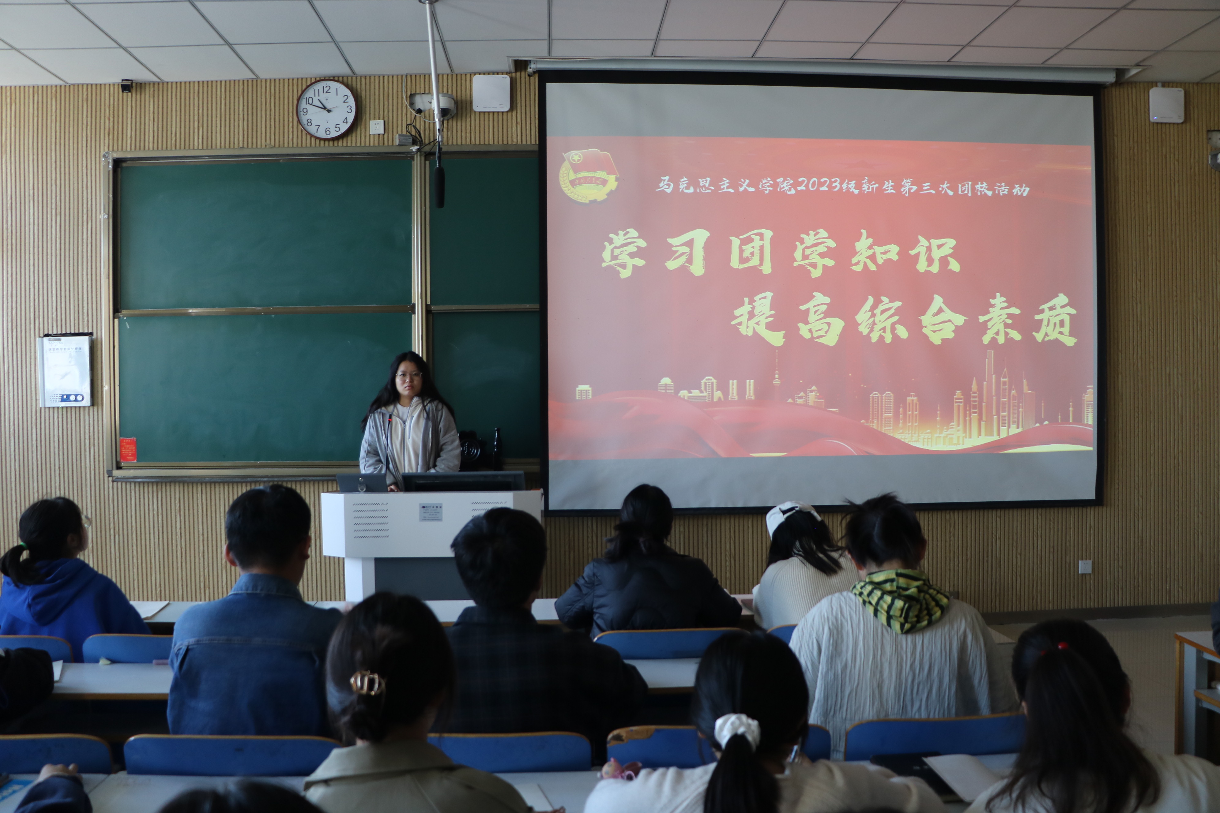 为增强新生团员意识,帮助新生更好地了解中国共产主义青年团,11月21日上午,2026年世界杯官网在社科楼515教室开展“学习团学知识,提高综合素质”新生第三次团校活动。公司2023级全体新生共同参加本次团课。此次活动由分团委副书记琚涵主持。