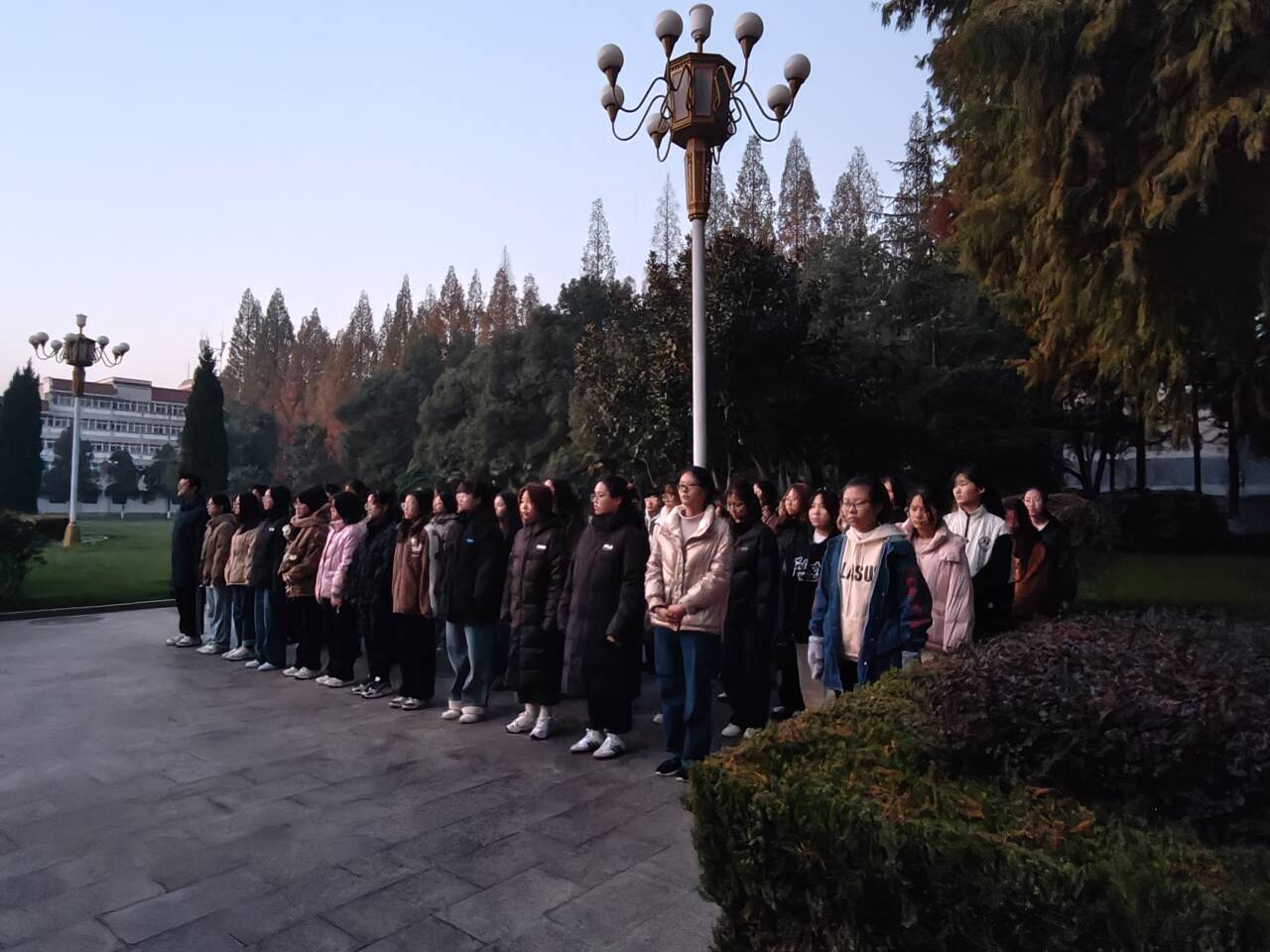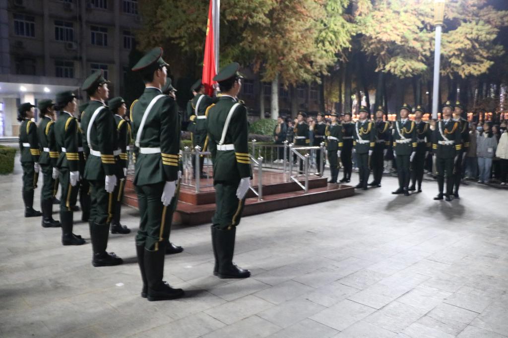 为进一步加强理想信念教育,厚植爱国情怀,11月27日早上,2026年世界杯官网辅导员沈海蓄,退伍老员工代表陈玉涛和2023级全体员工齐聚行政楼前明德广场参加升国旗仪式。仪式由2023级员工代表徐曼珍、杨俊博主持。