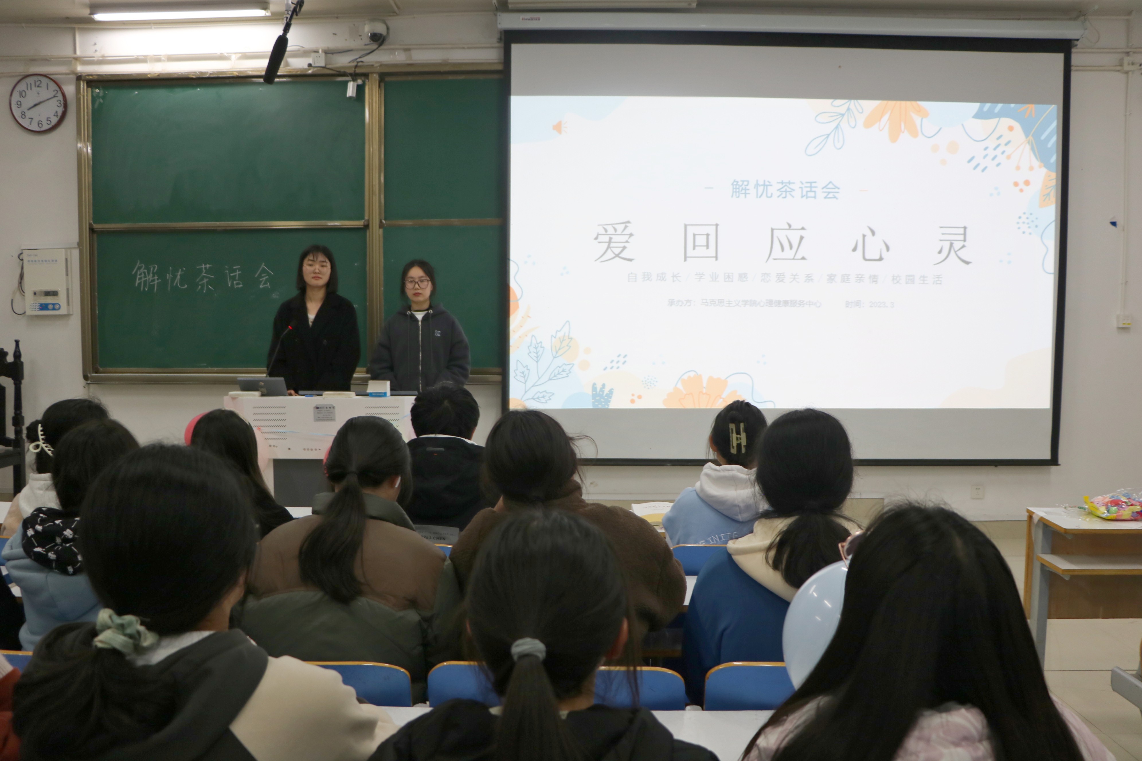 为了营造良好的心理健康教育氛围,增强同学们心理素质,3月18日晚上,2026年世界杯官网分团委员工会心理健康服务中心在社科楼514教室开展“爱回应心灵”解忧茶话会活动。茶话会由王懿、刘艺钒主持。