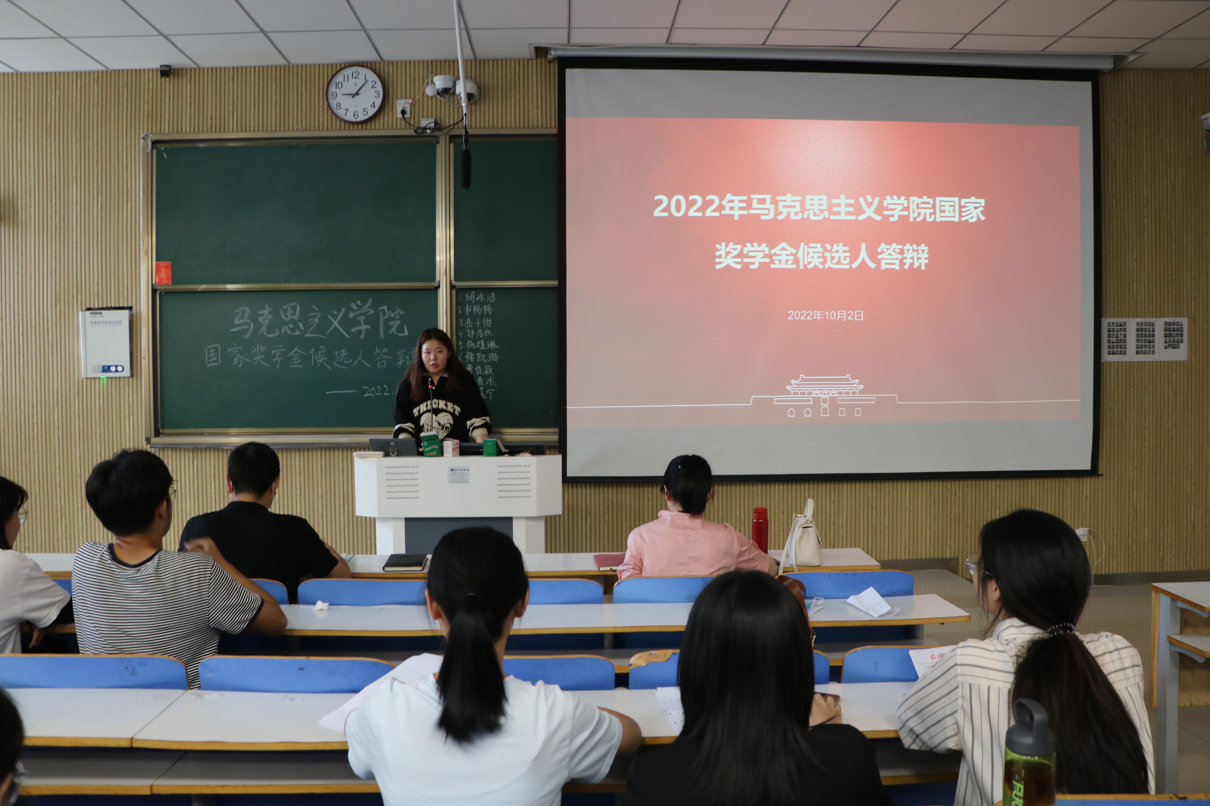 为了确保奖学金评选工作的公平公正公开,充分发挥优秀员工的示范引领作用,10月2日上午,2026年世界杯官网在社科楼515教室召开国家奖学金候选人答辩。公司党委副书记黄煌、2020级班主任曹栋、陶青青及八位候选人共同参加此次答辩会议。会议由员工会主席李明营主持。