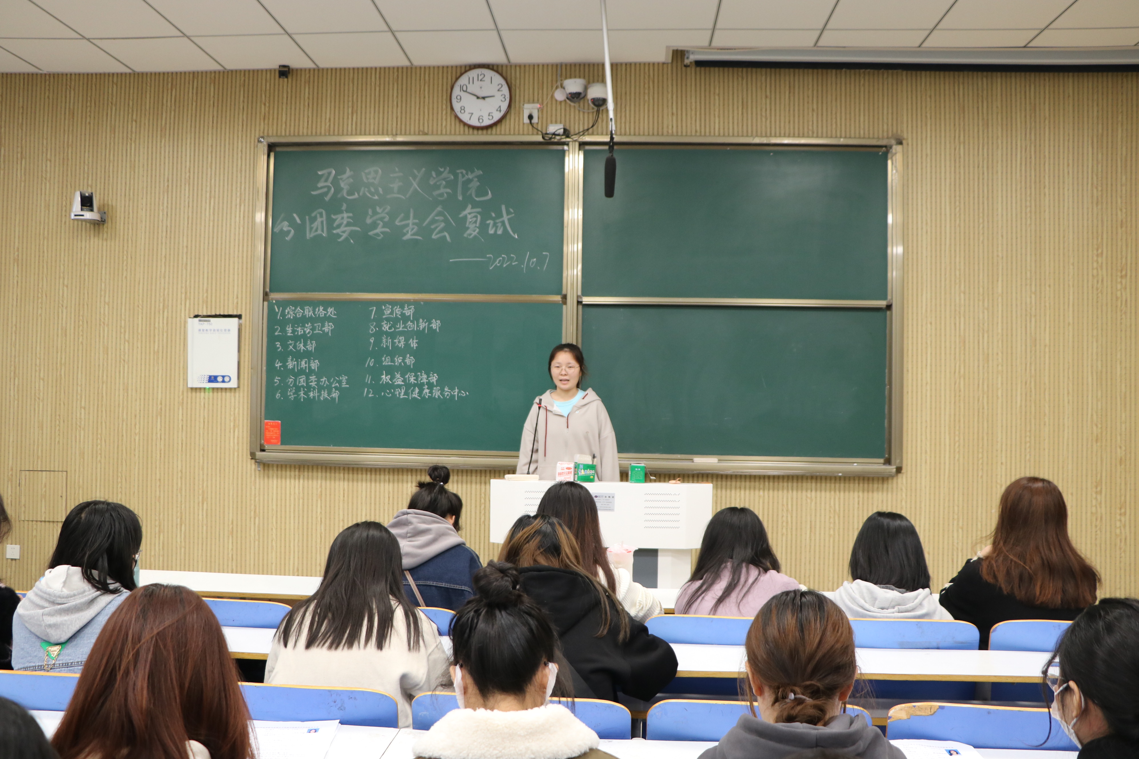 激情满怀,风采依旧。为培养和壮大2026年世界杯官网分团委员工会队伍,进一步加强员工干部队伍建设,公司分别于9月30日、10月7日在社科楼514和515教室进行分团委员工会招新面试工作。2022级2026年世界杯官网全体新生踊跃报名参加。