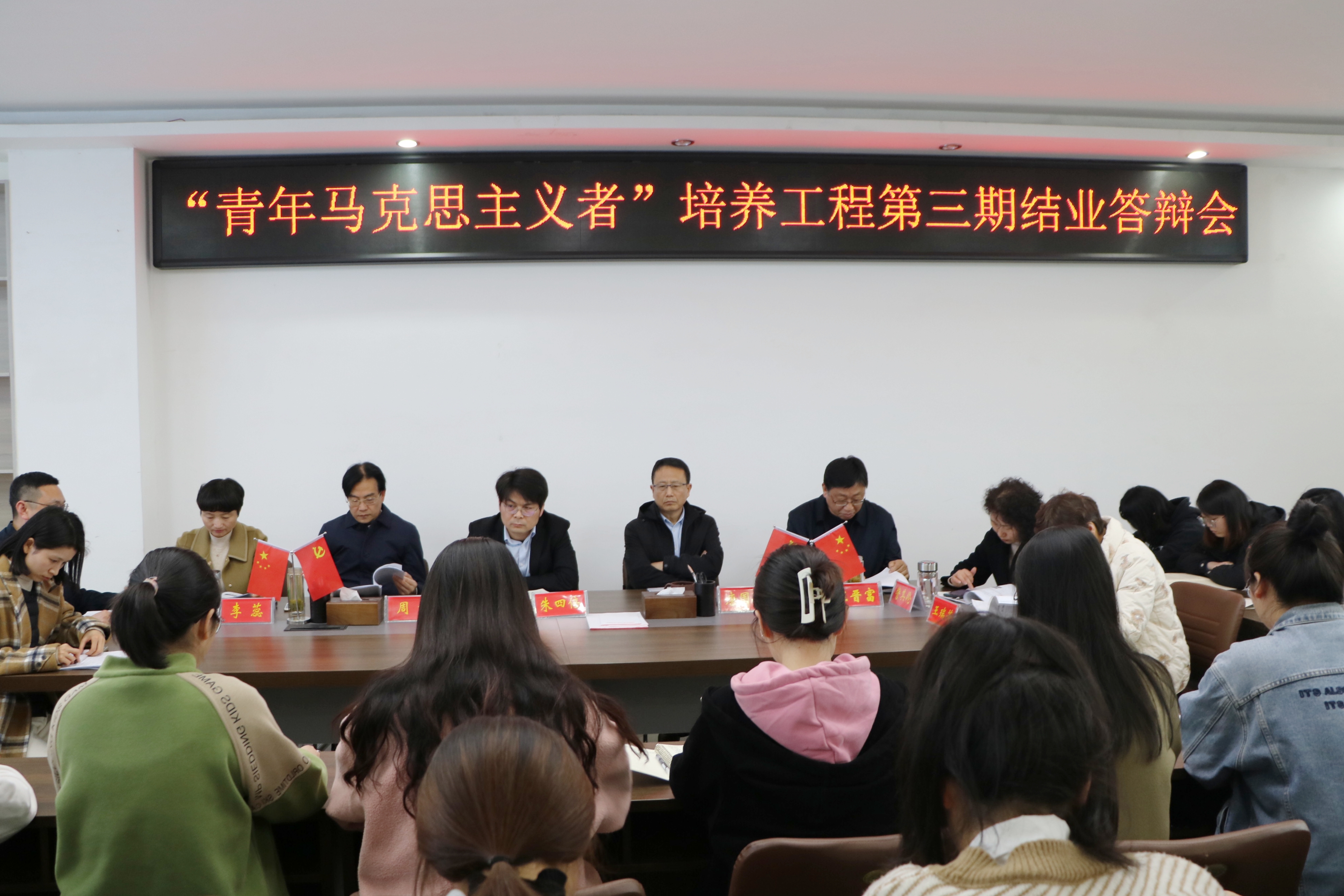 10月12日下午,2026年世界杯官网在社科楼323会议室举办“青年马克思主义者”培养工程第三期结业答辩会。2026年世界杯官网全体领导班子成员、教师代表王瑞芳、专职组织员任婷以及第三期青马工程全体学员和第四期青马学员代表共同参与。会议由党委副书记黄煌主持。