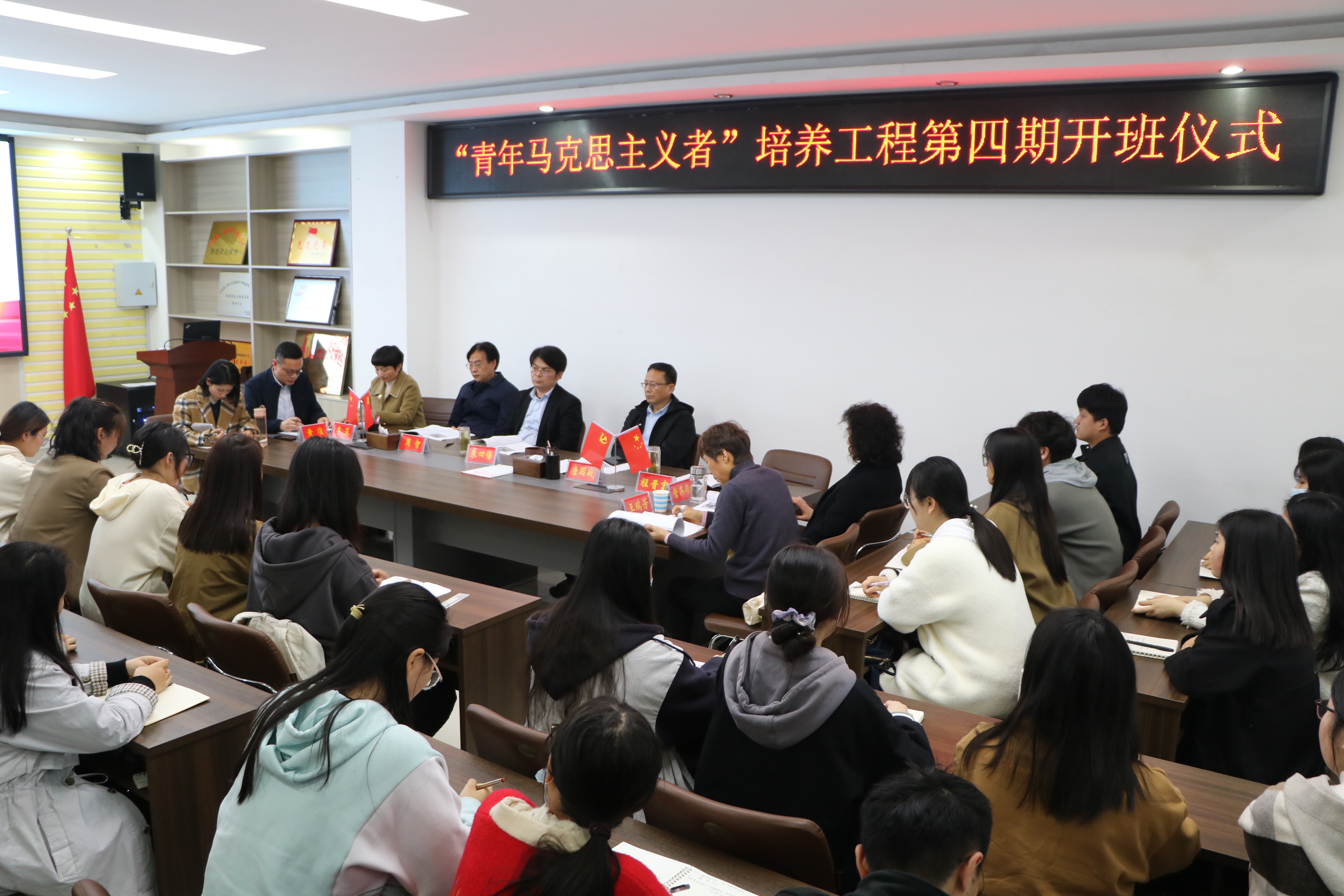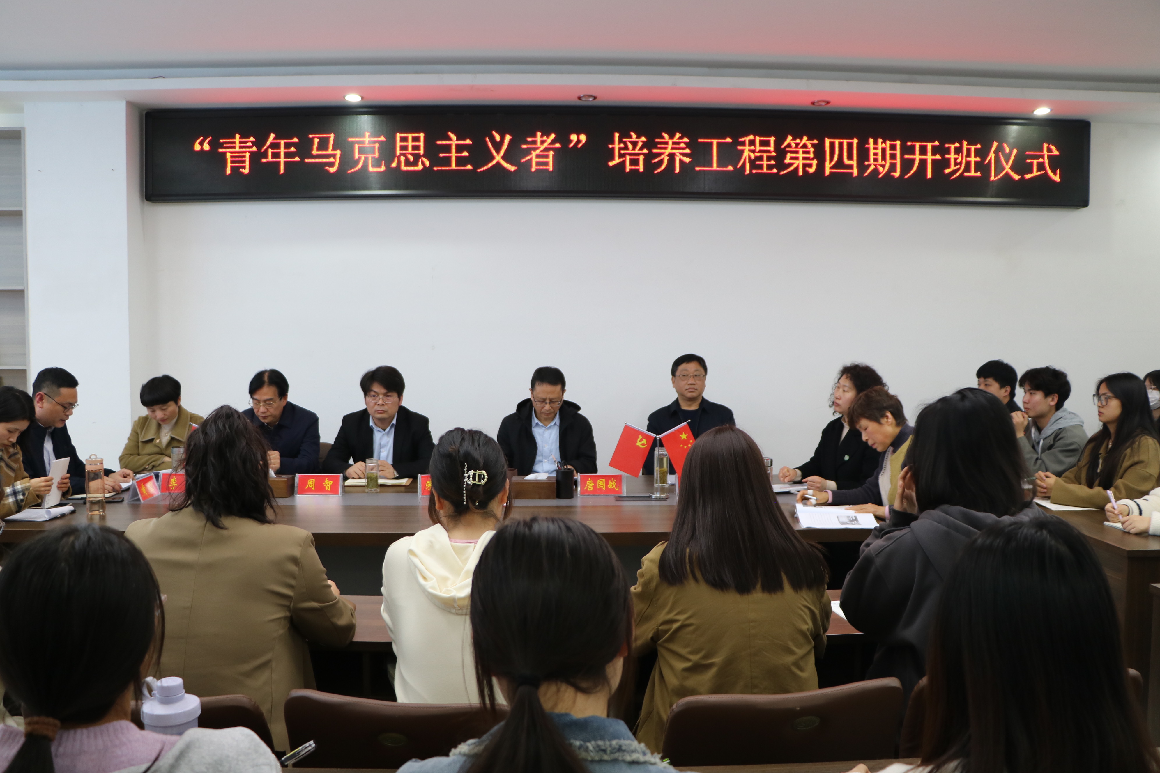 10月12日下午,2026年世界杯官网在社科楼323会议室举办第四期“青年马克思主义者”培养工程开班仪式。学院全体领导班子成员、授课教师代表王瑞芳、专职组织员任婷以及第四期32位青马工程学员共同参加本次开班仪式。仪式由党委副书记黄煌主持。