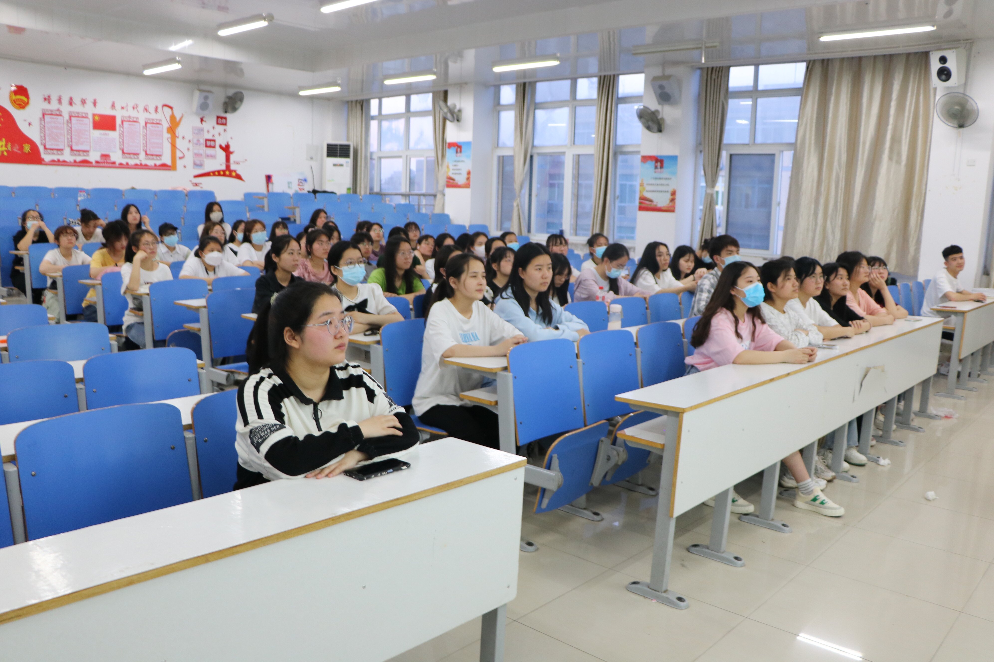 活动伊始,宋佳怡对三位宣讲人进行简要介绍并对他们表示欢迎。随后,三位优秀榜样代表依次从自身学习、日常工作及社会实践等方面进行宣讲。刘翌晨讲述自己自立自强、奋斗不止的青春故事,号召同学们要将日常的学习和课外活动相结合,不断提升自我、挑战自我,做到德智体美劳全面发展。程晓龙介绍了团队志愿服务的经历和取得的社会成效,并向同学们展示了自己优秀的创新创业成果,勉励同学们在大学期间应该合理规划,勇于尝试,拓宽学习视野,锻炼自身能力,在提升自我的同时不忘反哺社会。薛杨杨以“追逐星光,追寻自我”为主题,讲述了自己的课余生活和社团实践经历,展现出自己积极向上、昂扬乐观的精神风貌,鼓励同学们以饱满的精神状态面对明天,学会规划并且思考如何成就更好的自己,感恩生活,感恩社会。