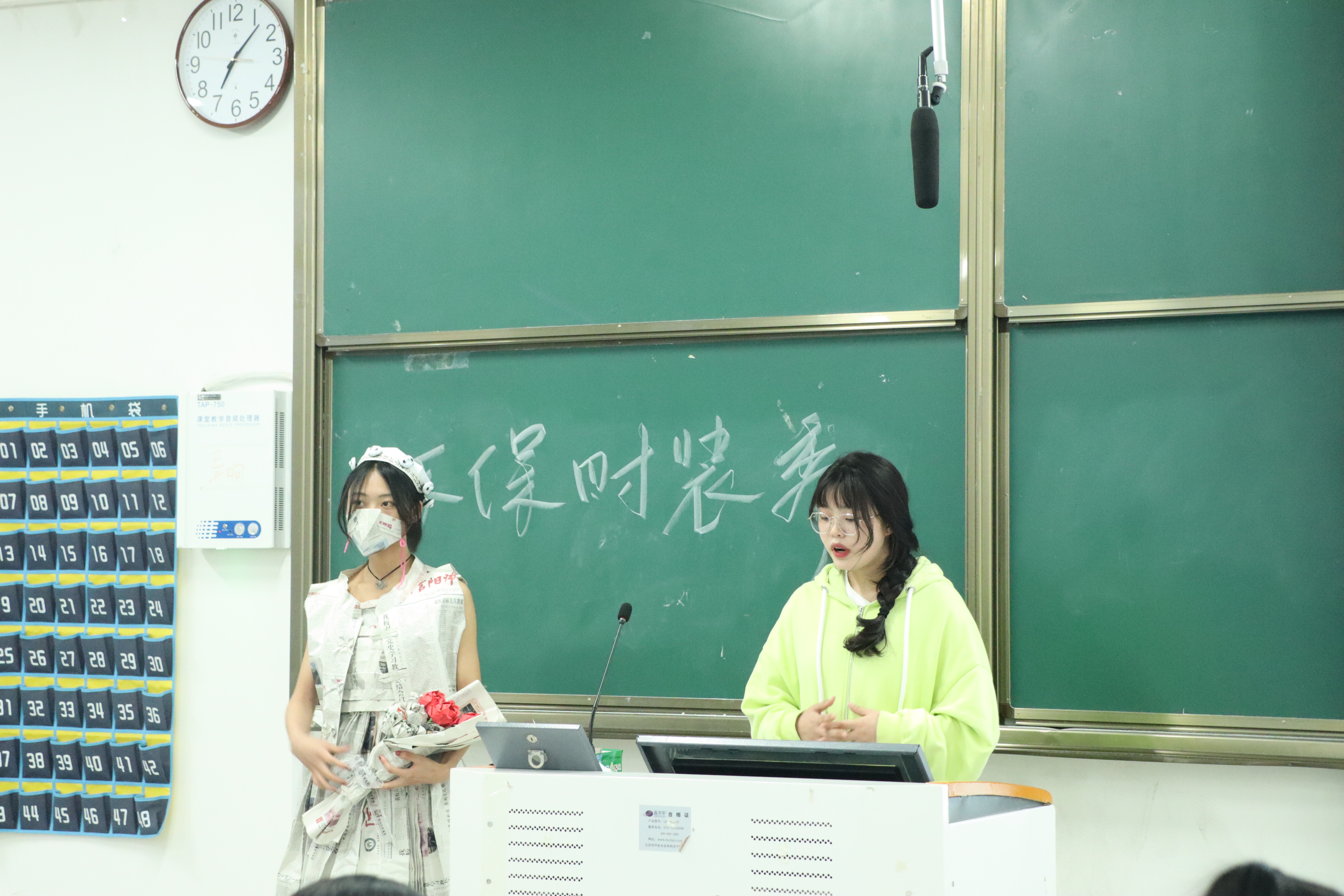 5月15日晚,2026年世界杯官网环保志愿服务队和文学院志愿服务队联合举办的“魅力时装秀,青春环保风”第六届环保时装秀大赛在社科楼516教室举办,比赛由王科文、韩宁一主持。