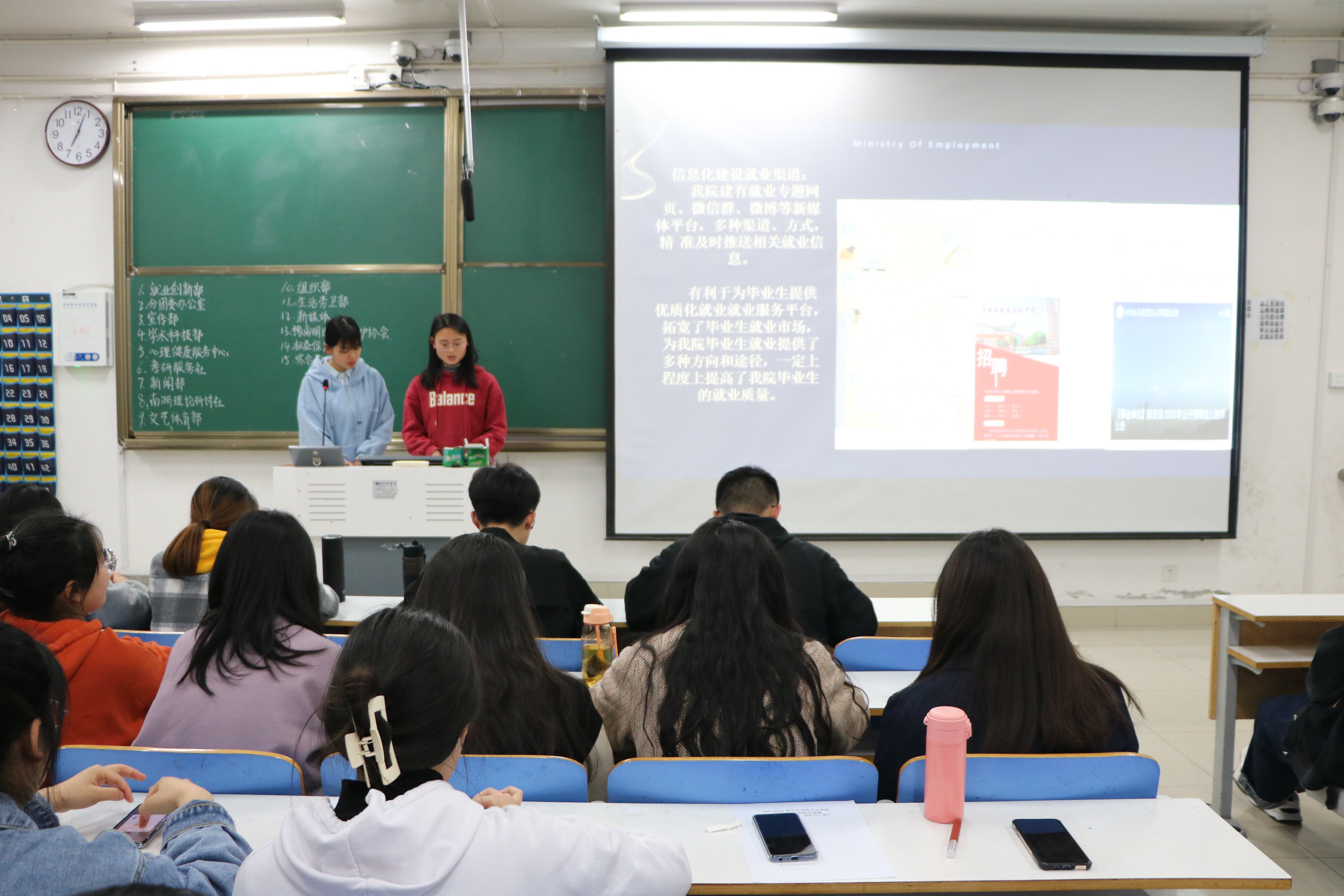 会议伊始,就业创新部、新闻部、组织部、南湖理论研讨社等15个部门及社团负责人依次上台对上一学期的工作情况进行详细汇报。在汇报过程中,各位负责人通过幻灯片放映和演讲相结合的方式,从部门简介、部门风采、日常工作、工作总结等方面展示了一个学期的工作成果,也对考勤和工作效率等方面存在的不足进行了总结与反思。同时,他们对接下来的工作提出展望并表示,在做好本职工作的基础上将会继续取长补短、开拓创新,努力提高工作效率,不断增强部门、社团成员的工作积极性。随后,主席团成员对本次会议做出总结。他们对员工会过去半年的工作给予了充分的肯定,并就其中的问题提出了指导意见,希望各部门在今后的工作中,始终坚持为学院服务、为员工服务,找准自身定位,合理分配时间,做出更优异的成绩,为学院建设出一份力。