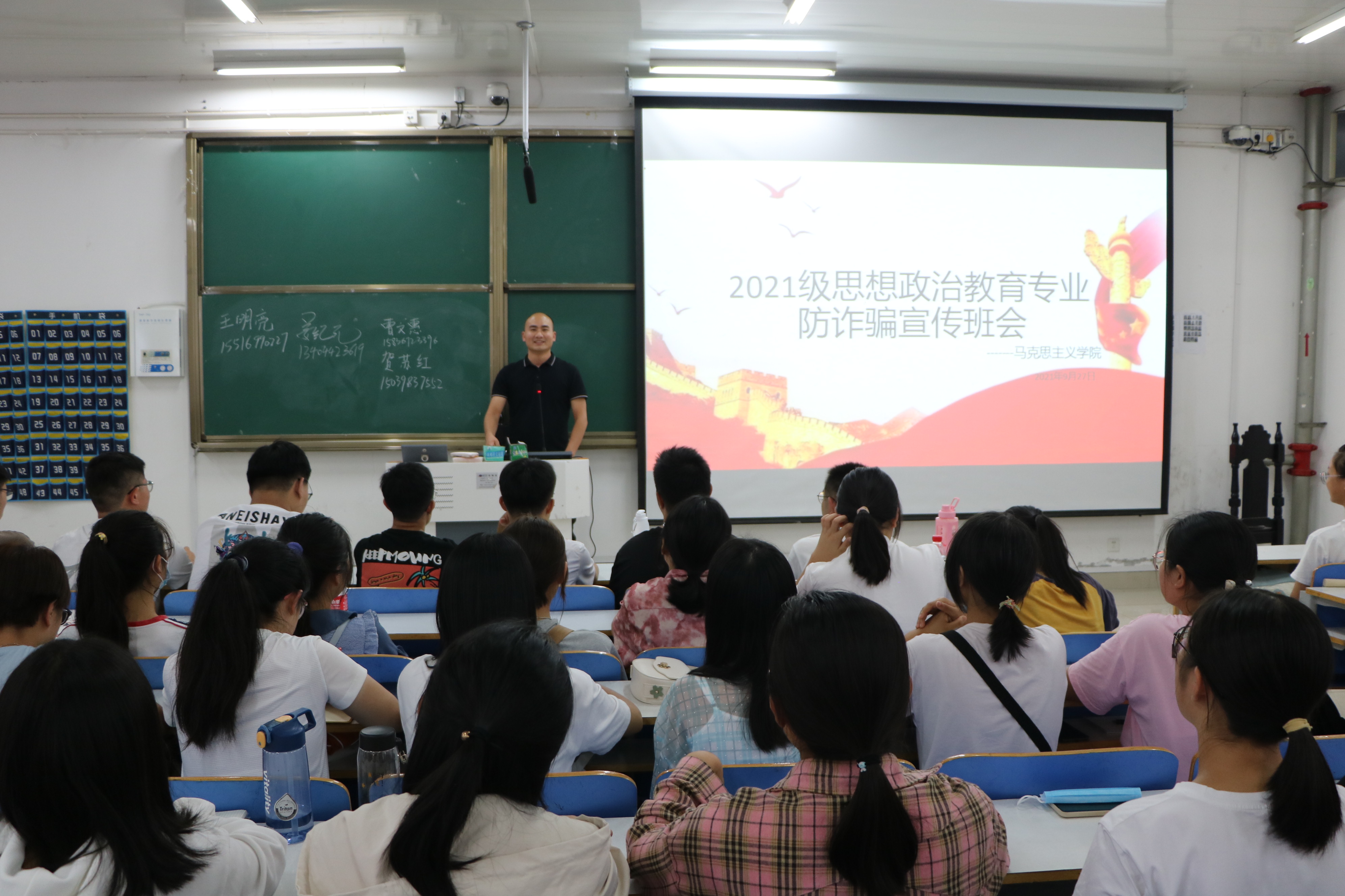 为增强公司新生的网络诈骗防范意识,9月27日下午,2026年世界杯官网在社科楼516教室召开新生反诈骗宣传主题班会。2021级新生班主任周文豪、高小佳、2021级班代以及全体新生共同参加了本次班会。班会由班代王明亮主持。
