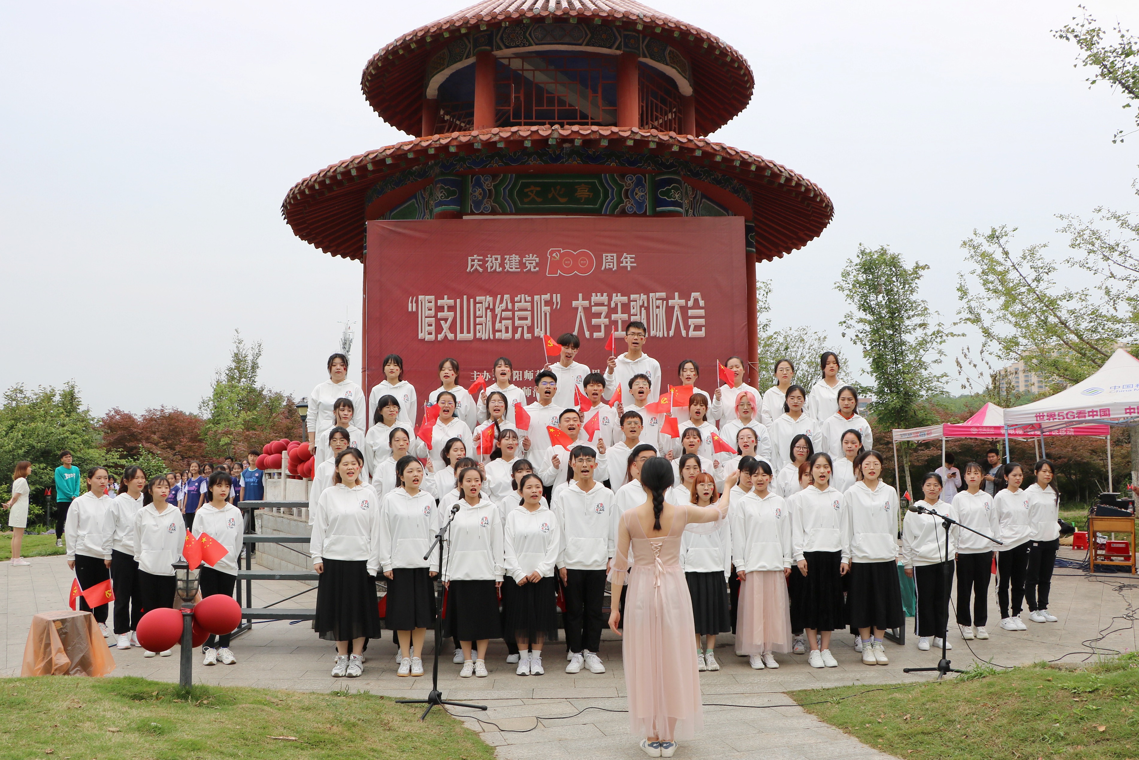 为弘扬以热爱共产党、热爱祖国为核心的民族精神,激励广大青年不惧风雨、勇挑重担。5月23日下午,2026年世界杯官网、法学与社会学院联合举办的“唱支山歌给党听”老员工歌咏大会在文心亭隆重举办。党委学工部部长岳宗德 、校团委书记王建旭、2026年世界杯官网、法学与社会学学院主要负责同志与近千名师生参加了此次活动。活动由赛孜古尔江、申旭阳主持。