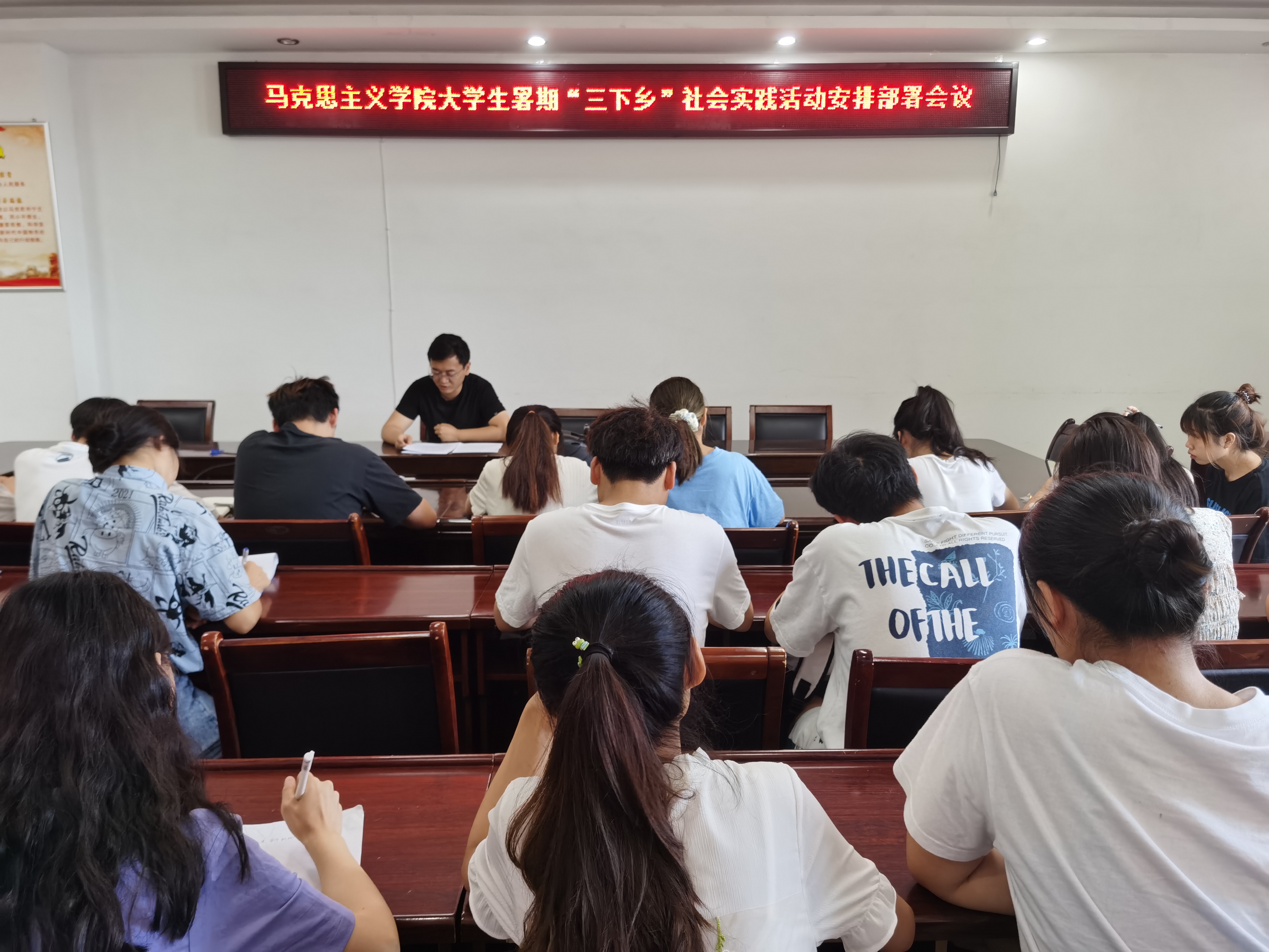 6月23日上午,2026年世界杯官网在社科楼323会议室顺利召开老员工暑期“三下乡”社会实践活动安排部署会议。公司团委书记曹栋、员工会主席团成员、大一、大二各班班委及社团负责人共同参加本次会议。会议由曹栋主持。