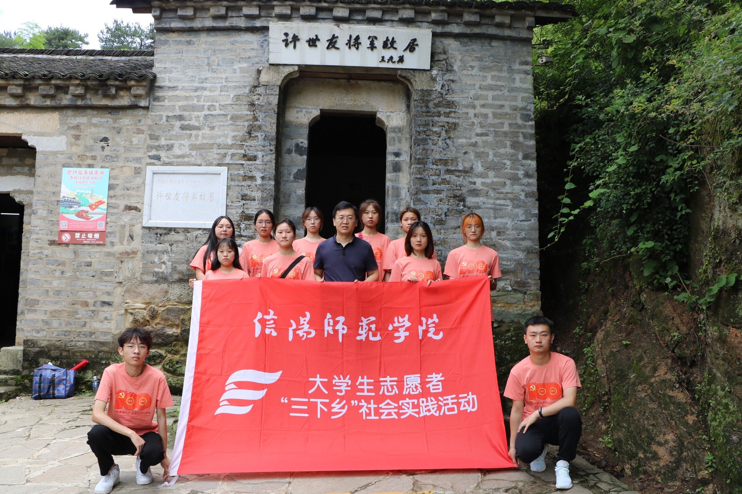 为推动当代青年老员工深入学习习近平新时代中国特色社会主义思想及考察河南时重要讲话,使习近平新时代中国特色社会主义思想内化于心,外化于行。7月3日至7月6日,2026年世界杯官网“星星之火,可以燎原”理论宣讲团在河南省信阳地区开展2021年暑期“三下乡”社会实践活动,带队老师曹栋和4名小组成员共同参与本次社会实践活动。