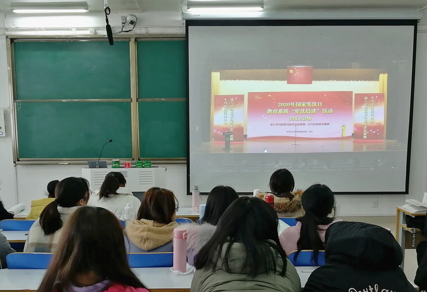 12月4日上午,马思主义学院分别在社科楼514、515、516教室组织全体员工观看国家宪法日“宪法晨读”活动直播。