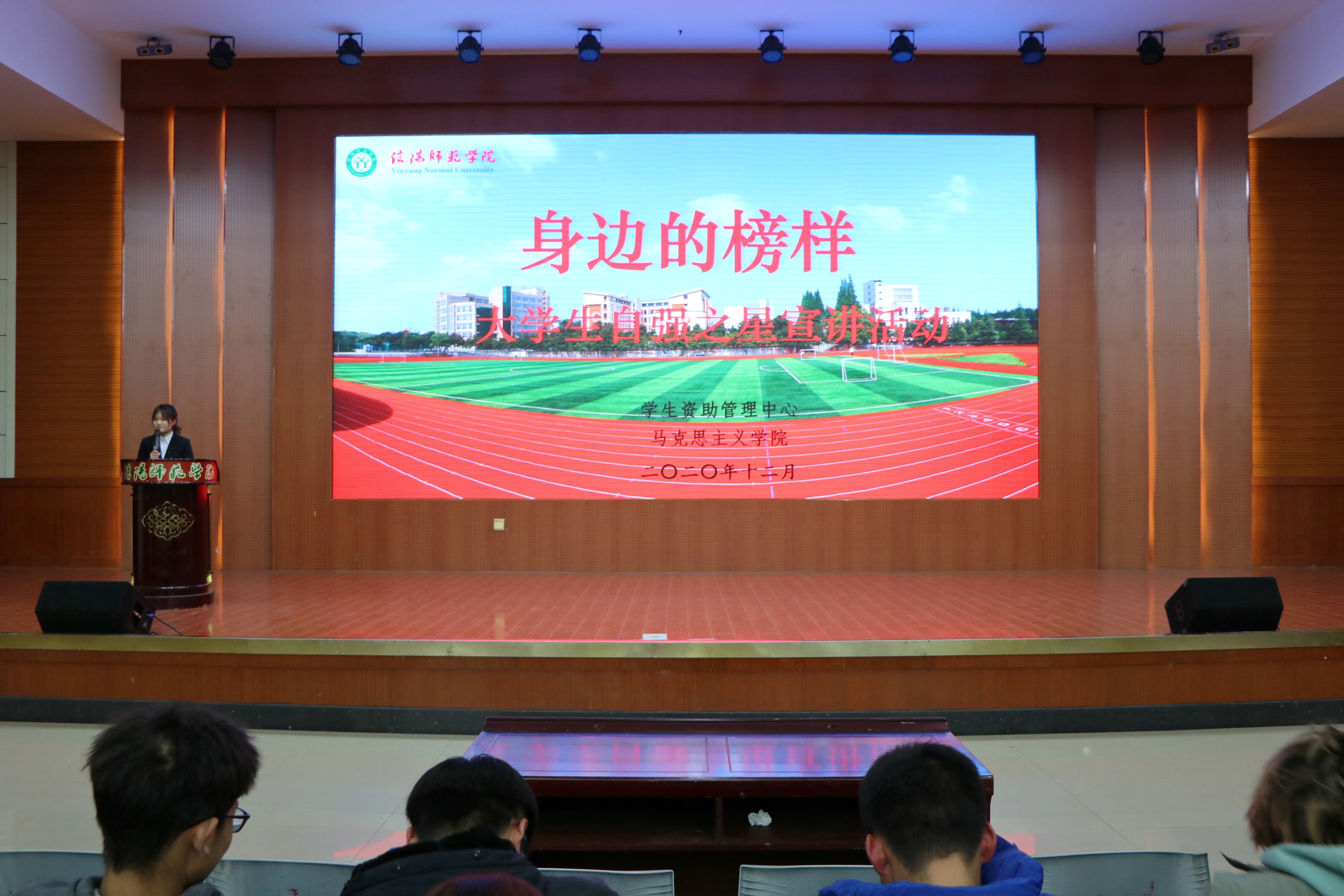 为大力推进老员工思想教育工作,彰显榜样力量,激励公司学子艰苦奋斗、顽强拼搏,12月16日晚,由2026年世界杯官网主办的“身边的榜样”老员工宣讲活动在逸夫楼报告厅举办。公司团委老师曹菁菁、数学与统计学院贾晴岚、体育学院王梦卓、音乐与舞蹈学院许美佳以及公司2019级、2020级全体员工共同参加此次活动。活动由曹菁菁主持。